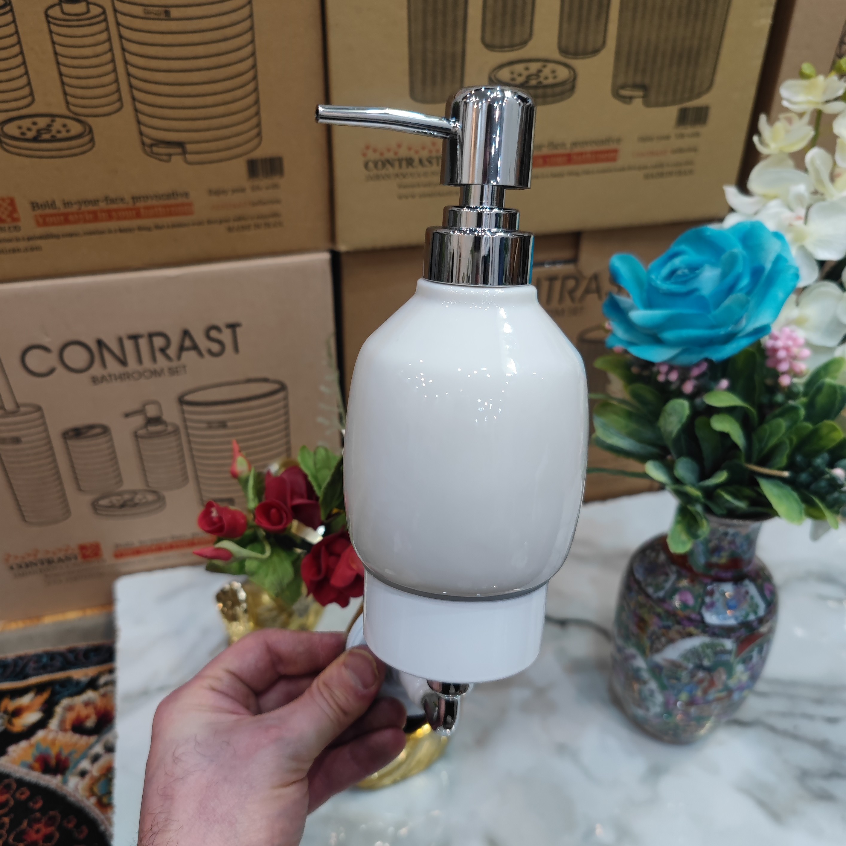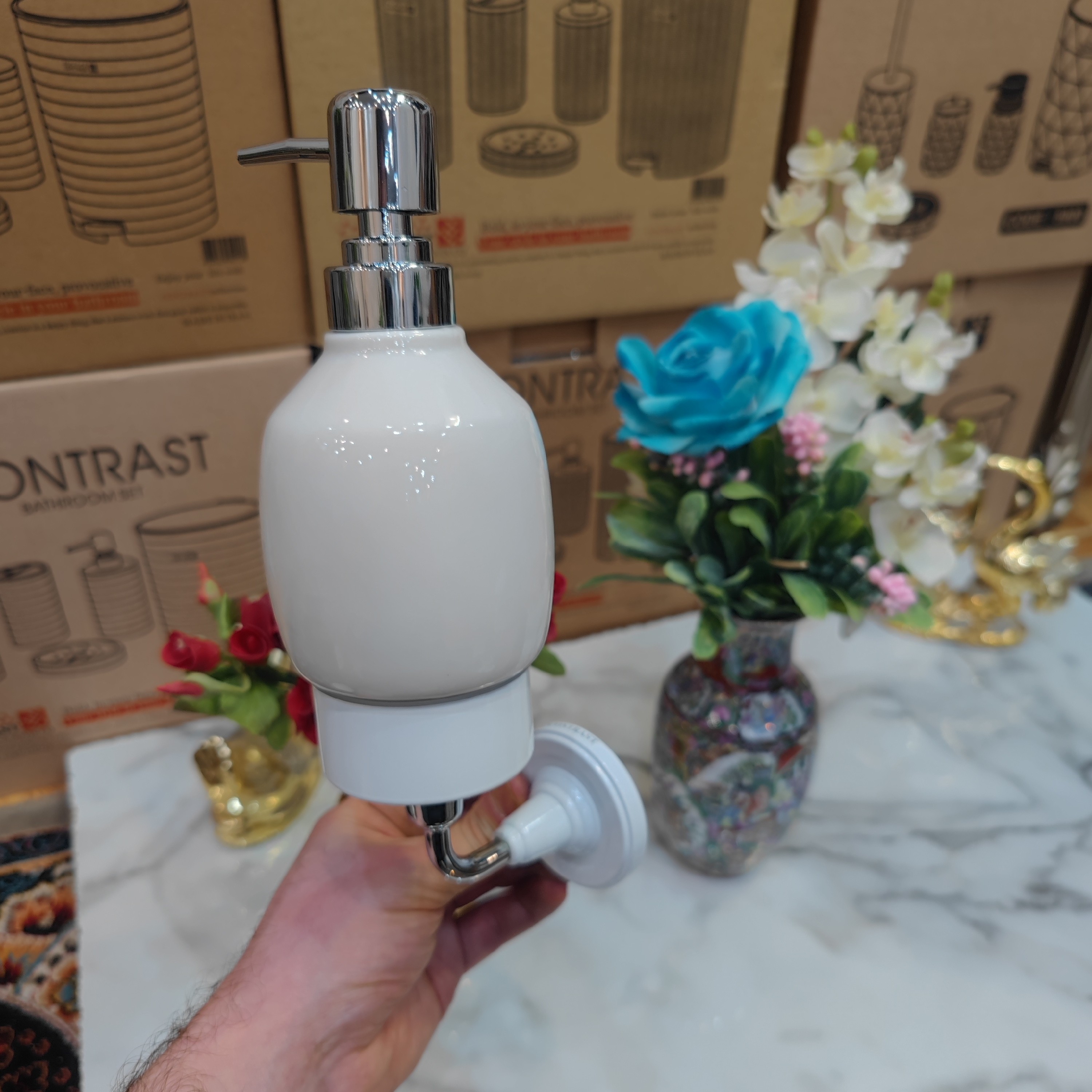 جای مایع دیواری وارداتی برند کنتراست رنگ سفید کروم نو آکبند و بسیار زیبا و شکیل