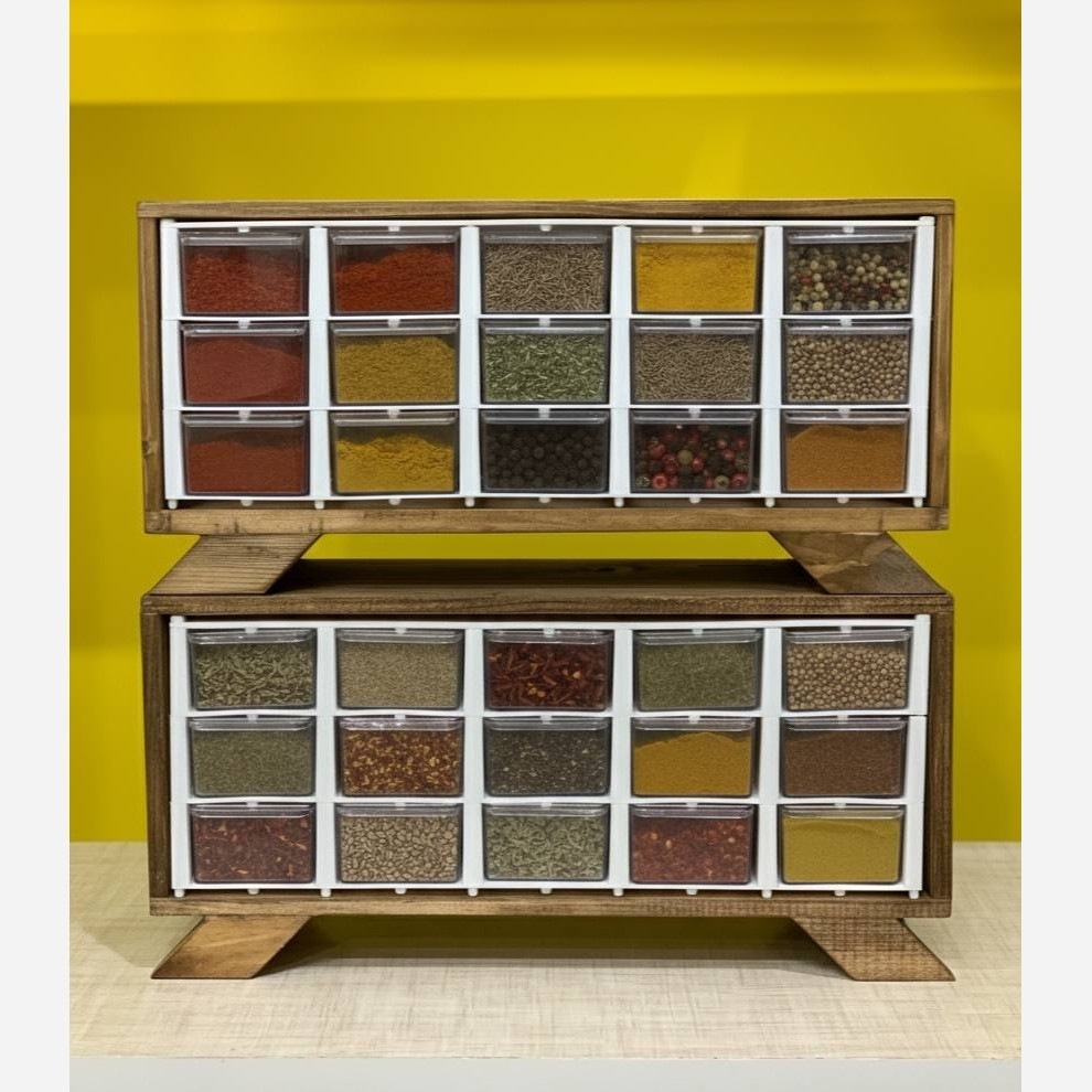 جا ادویه چوبی کشویی 15 کشو . مقسم ادویه 15 کشو چوب روس مبلمونسرا مدل 290898