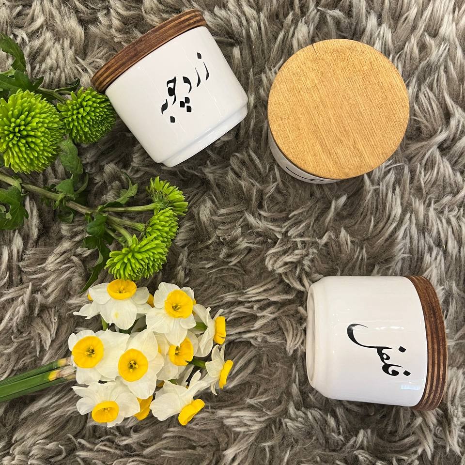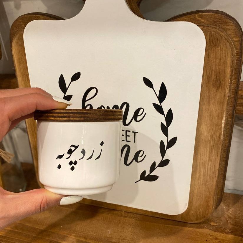 جا ادویه سرامیکی استوانه کوتاه تکست زردچوبه مبلمونسرا مدل 273989