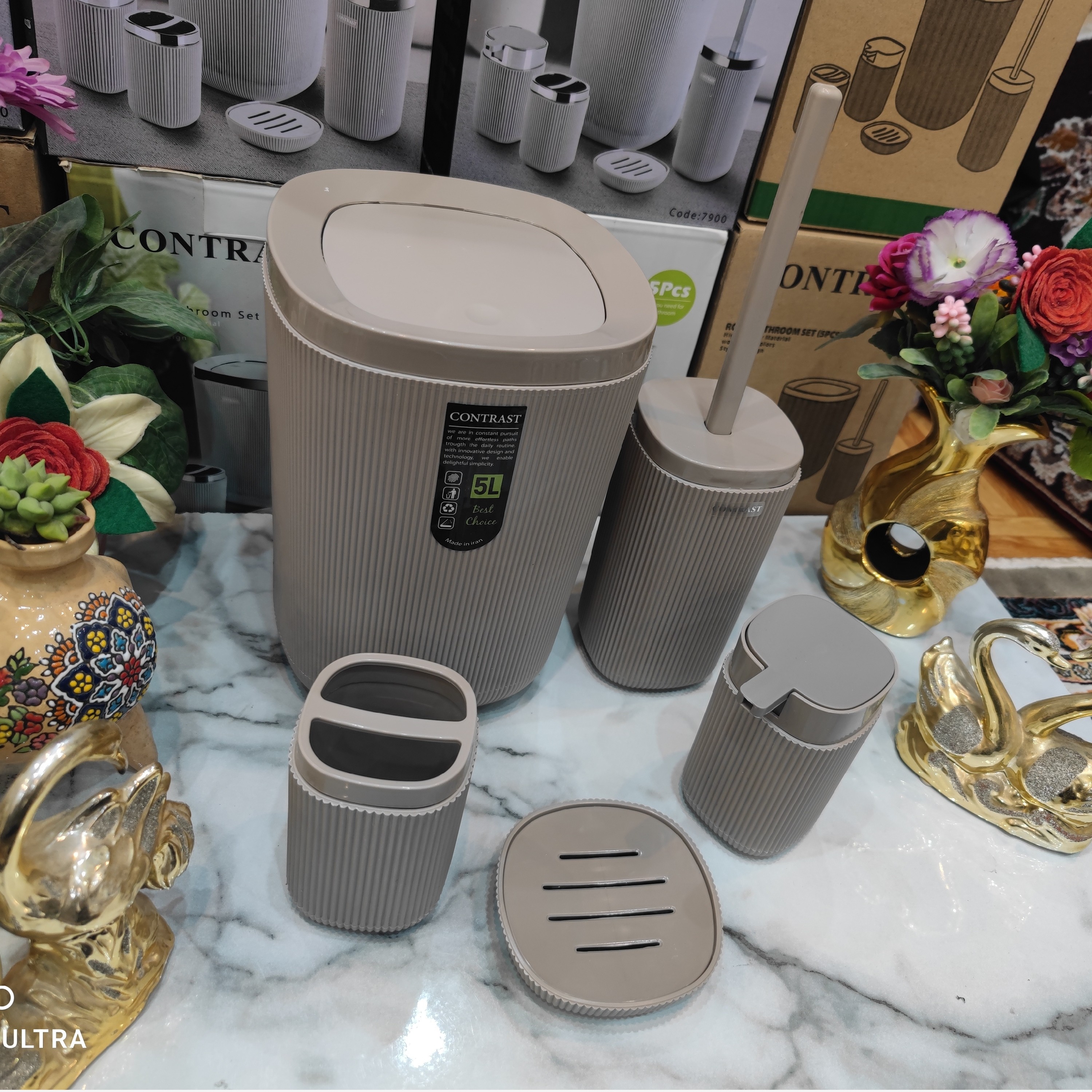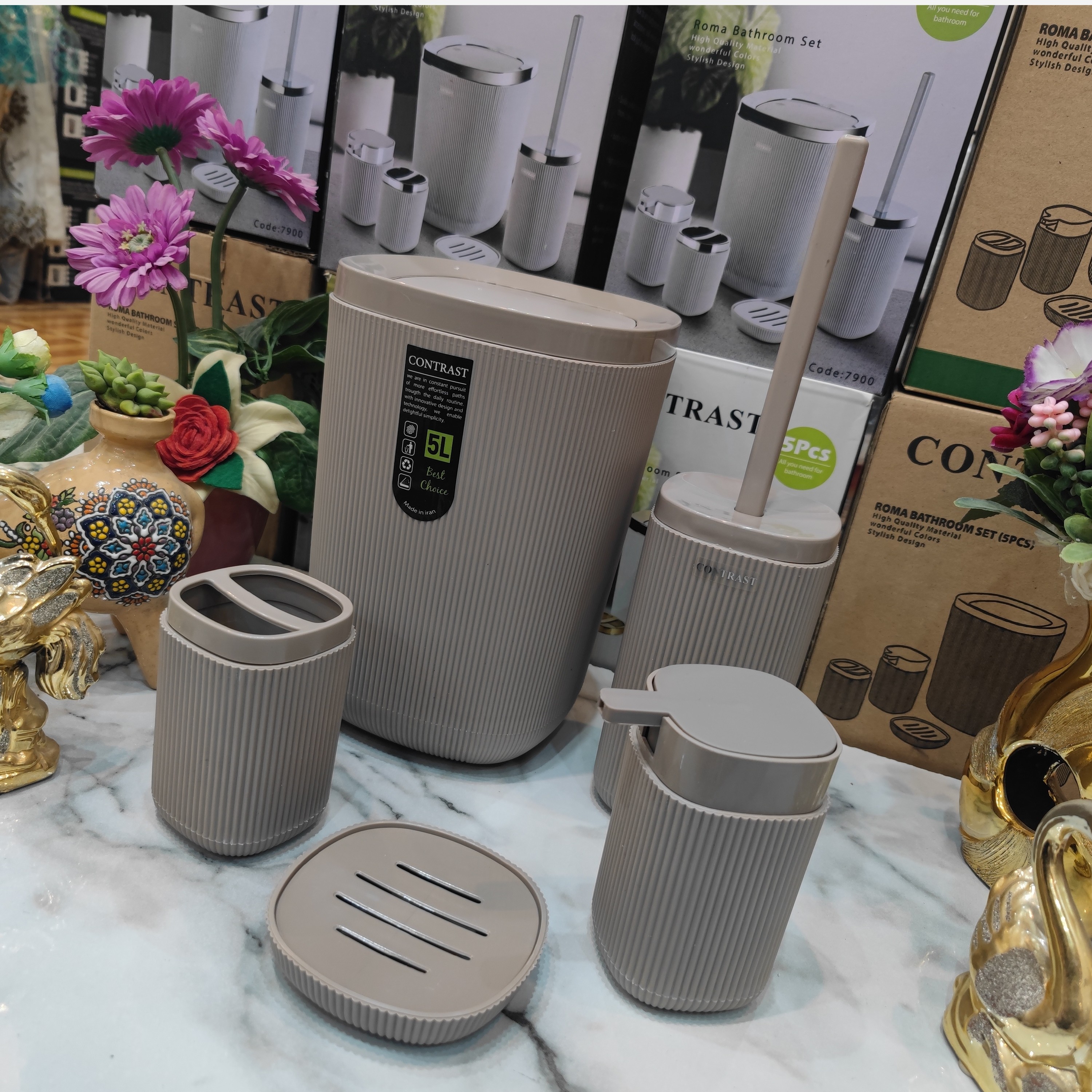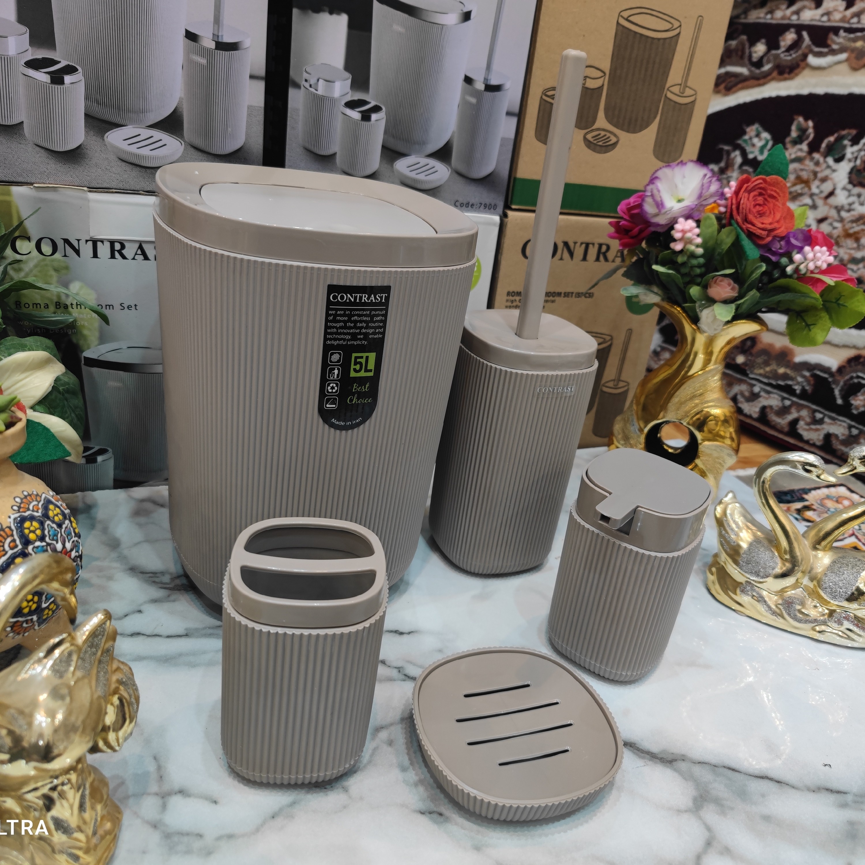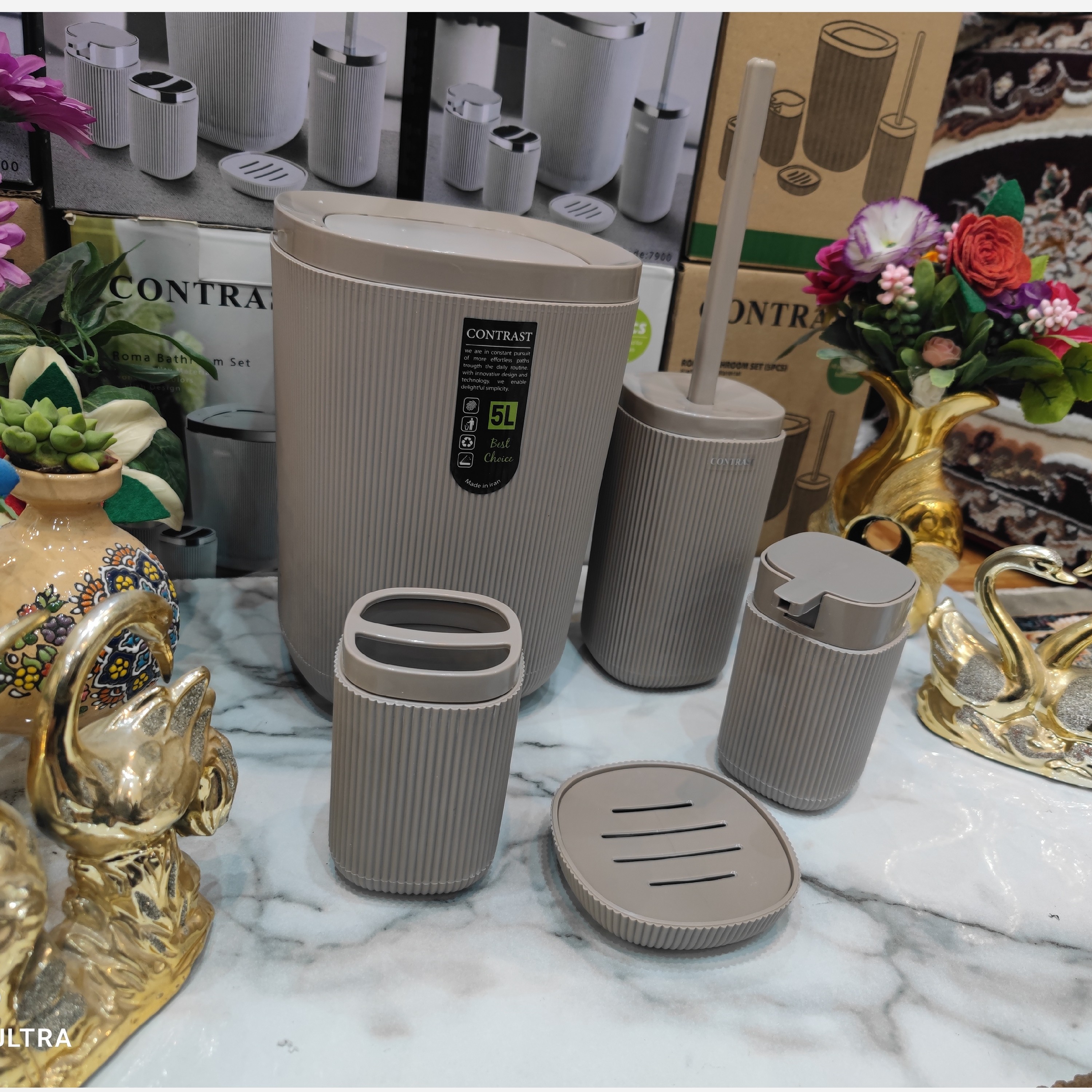 ست سرویس بهداشتی 5 پارچه طرح جدید روما خطی شیاردار برند کنتراست نو آکبند رنگ بسیار زیبا و شکیل و جذاب نسکافه ای مات کیفیت ساخت بسیار مناسب و قیمت خوب و مناسب مناسب استفاده در سرویس بهداشتی یا جهیزیه ست سرویس بهداشتی شامل: 1.سطل زباله با درب بادبزنی باکیفیت بالا 2.برس مخصوص شستشوی سرویس بهداشتی 3.جامایع دستشویی با سرپمپ باکیفیت 4.جای مسواک و جای خمیر دندان 5.جای صابون جامد ساخته شده از پلاستیک فشرده درجه یک آنتی باکتریال طرح بسیار زیبا و جذاب روما خطی رنگ نسکافه مات ارسال سریع به تمام نقاط کشور برای خریداران عزیز