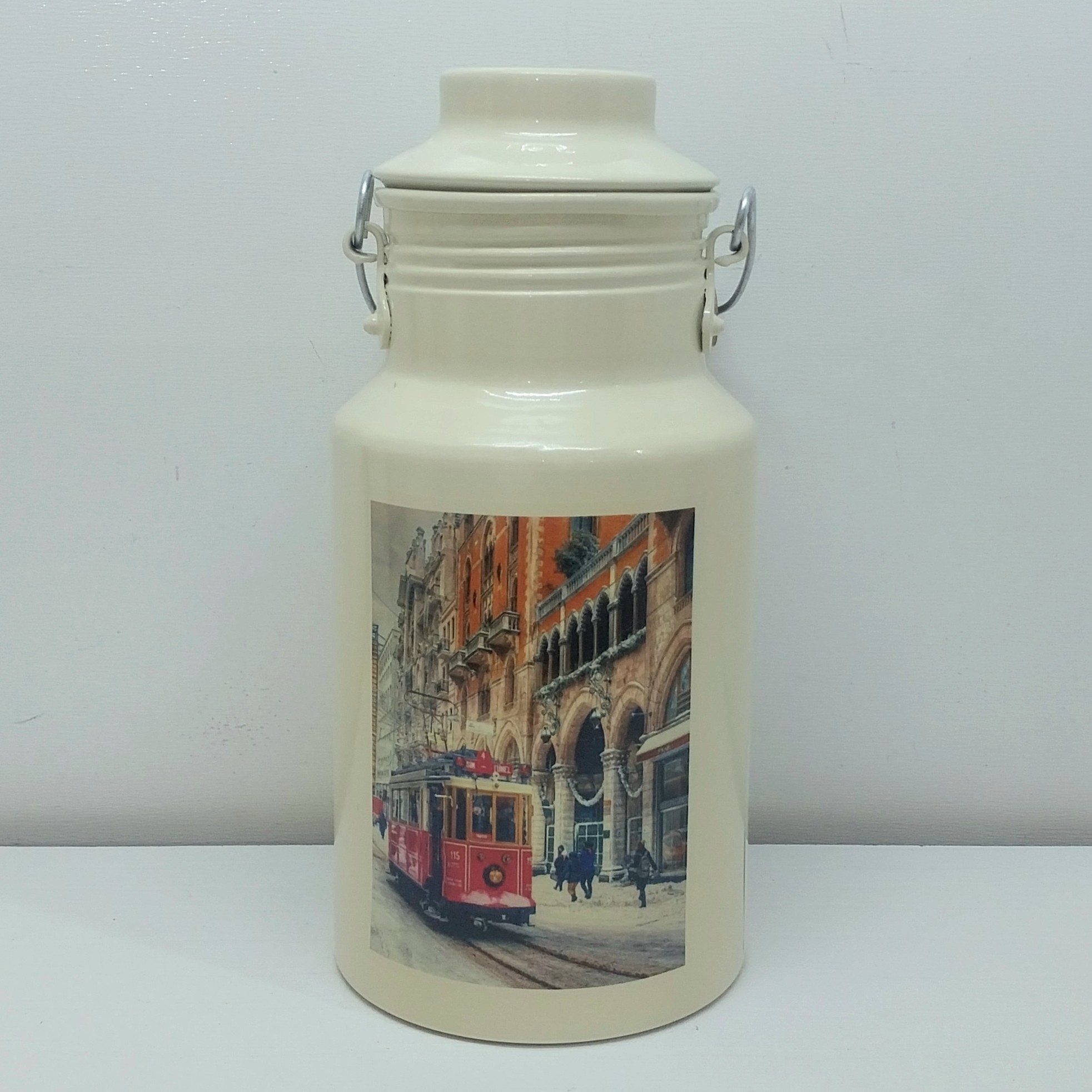 سطل شیر روحی 2 لیتری - بانکه - ظرف روغن یکتا هوم رنگ کوره و دسته چوبی مدل A020 مبلمونسرا مدل 288811