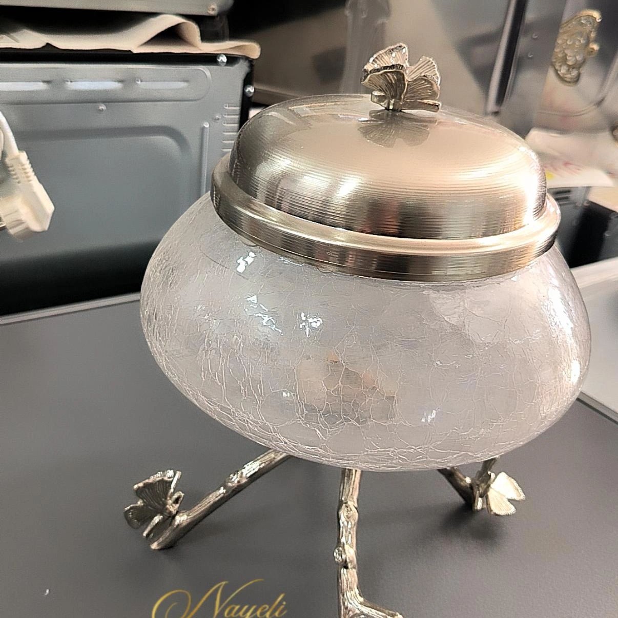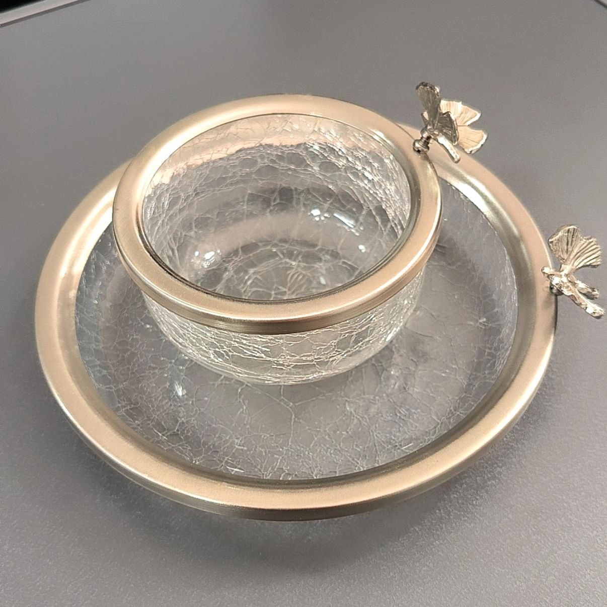 سرویس پذیرایی رنگ نیکل شیشه های سه لایه با ضمانت رنگ پایه المینیوم سرویس شامل میوه خوری اجیل خوری شیرینی خوری شکلات خوری پیاله و پیش دستی