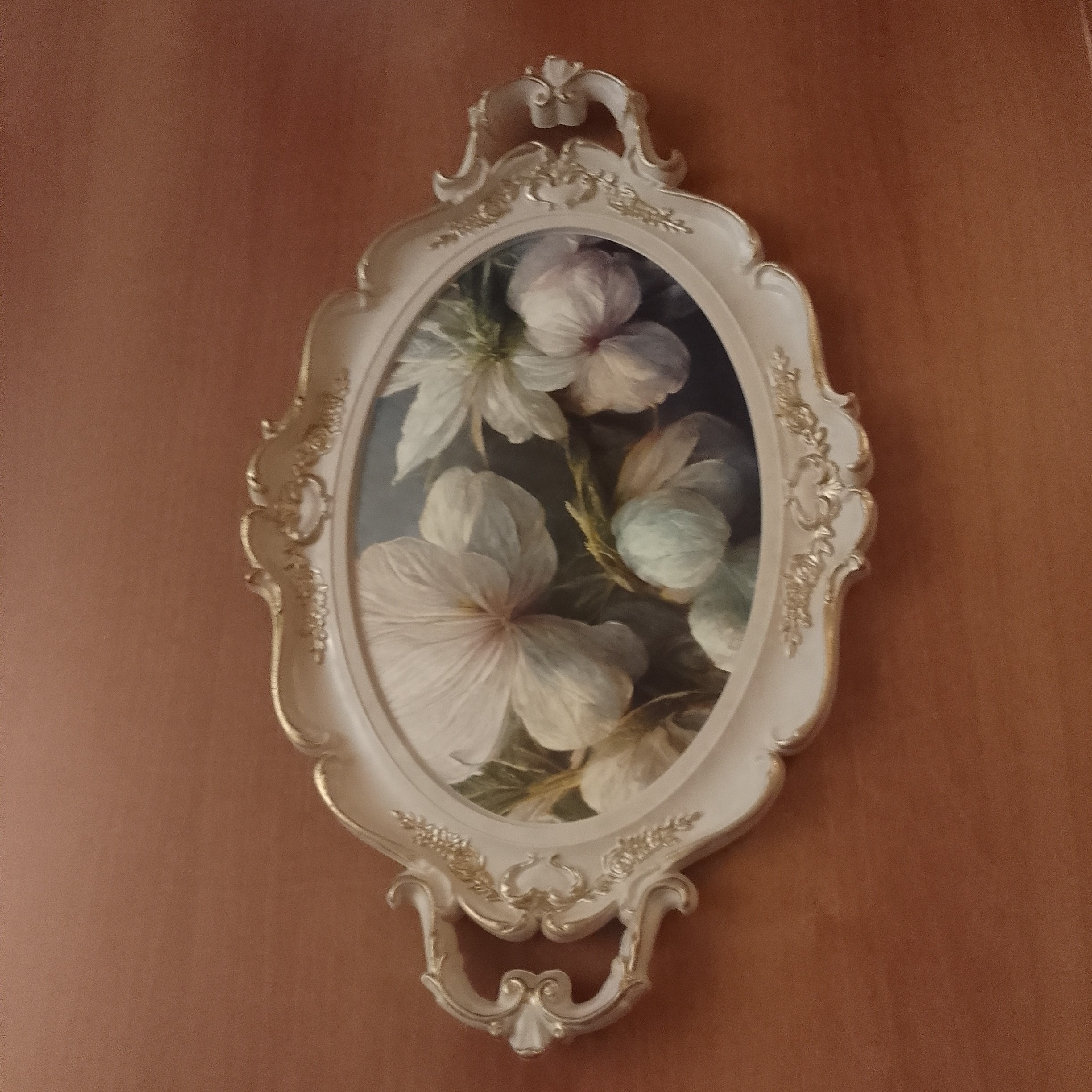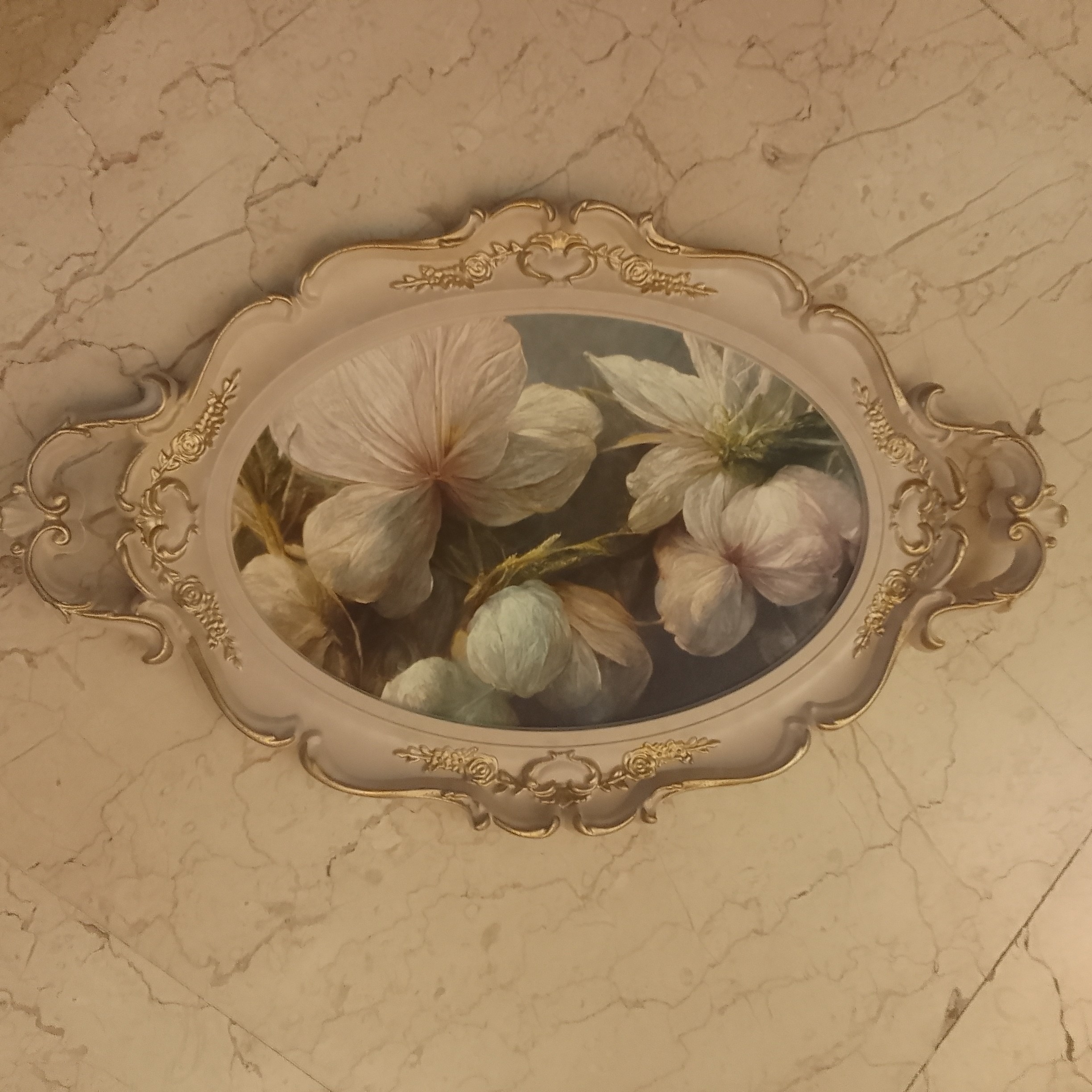 سینی صورتی کرم طلایی بیضی نقاشی گلدار گل گلی ابعاد 48در30 جنس مواد نشکن دیس مبلمونسرا مدل 271221