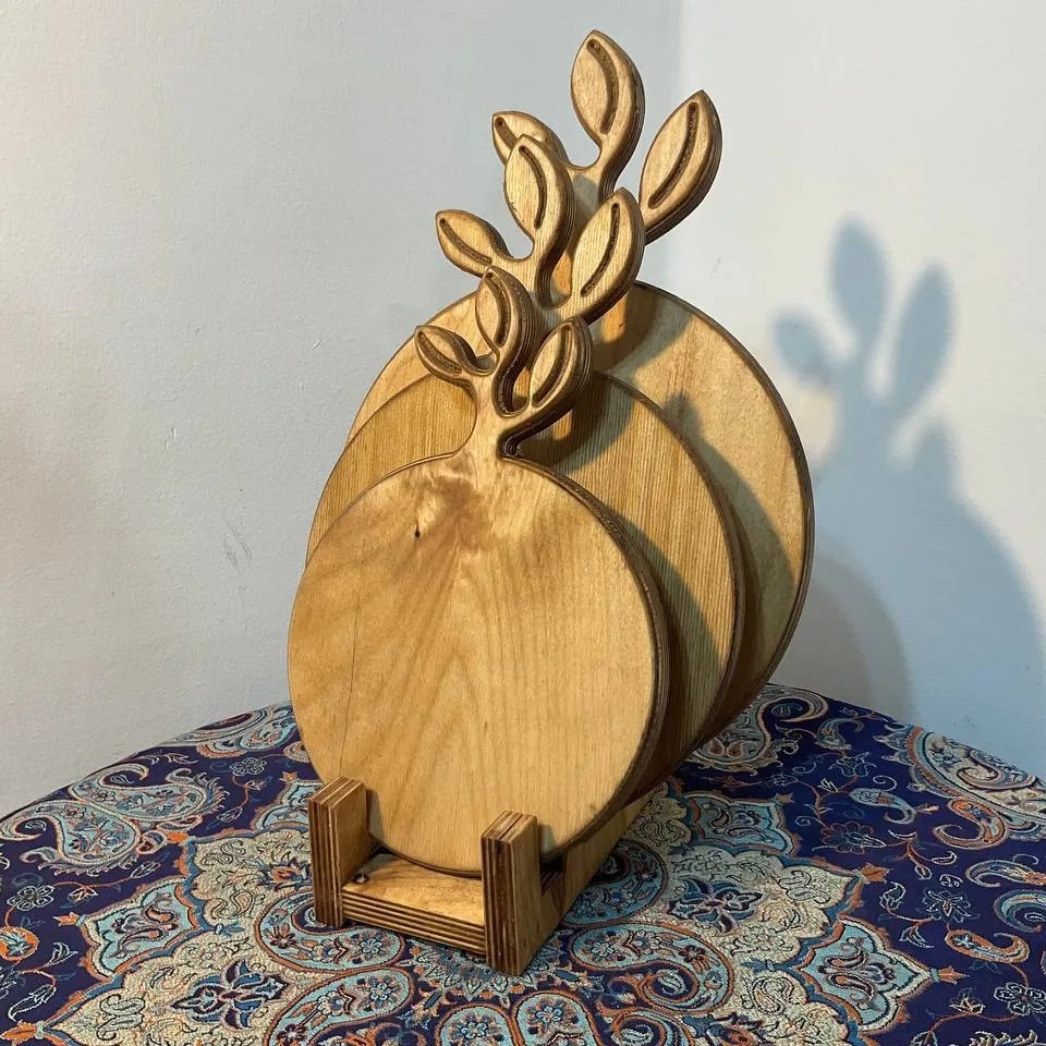 تخته سرو سه تایی مدل برگ بسیار کاربردی وزیبا قابل شستشو مناسب سرو شیرینی و تنقلات مبلمونسرا مدل 278315