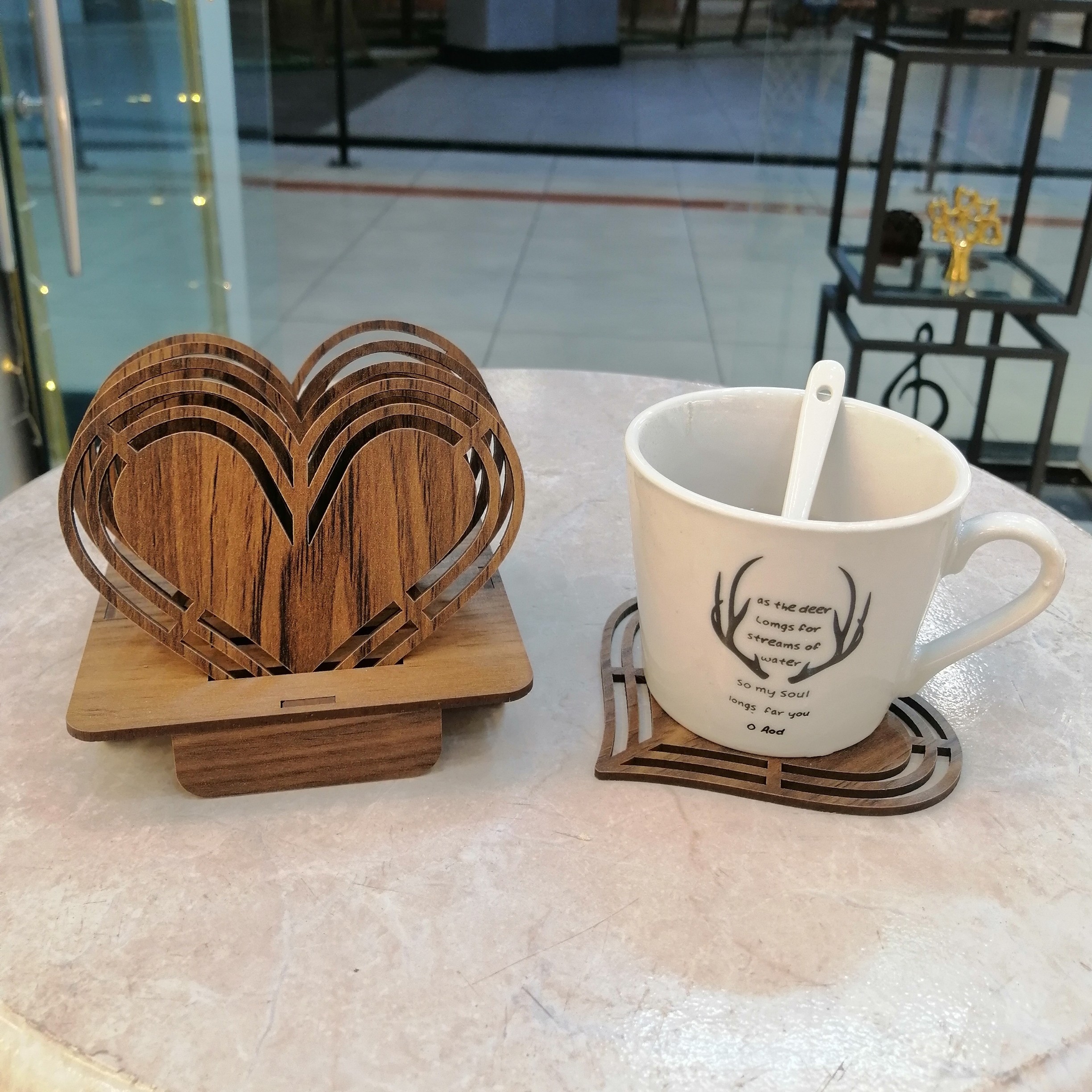 زیر لیوانی چوبی 6تایی همراه با استند کیفیت عالی مبلمونسرا مدل 296848