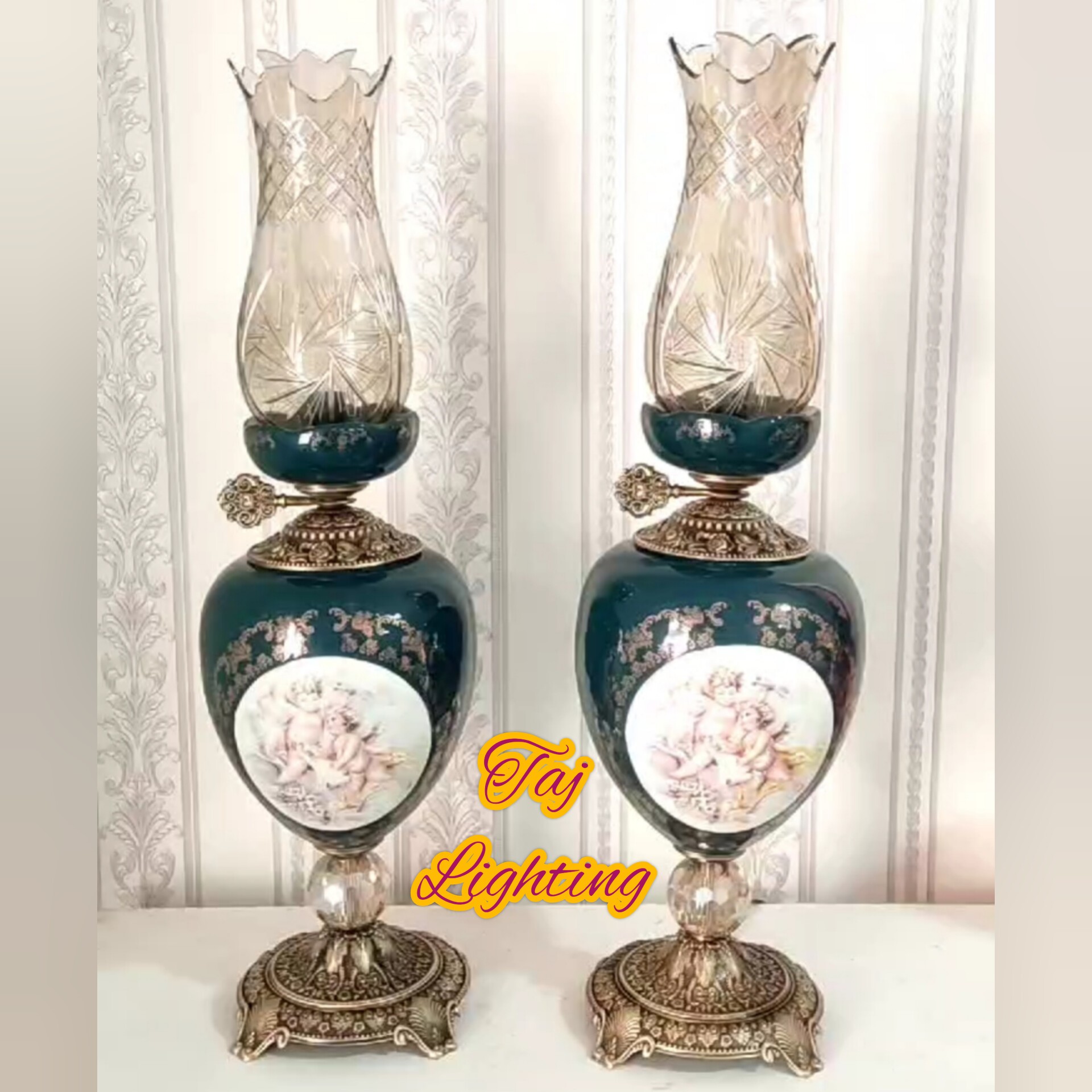 💥قیمت درج شده ، قیمت هر عدد چراغ می باشد لاله تراش خورشیدی رنگ لاله : شامپاینی جنس وسط تنه : چینی رنگبندی وسط تنه : یشمی، زرشکی، سورمه ای ، فیروزه ای ، سفید جنس پایه برنز با آبکاری آنتیک