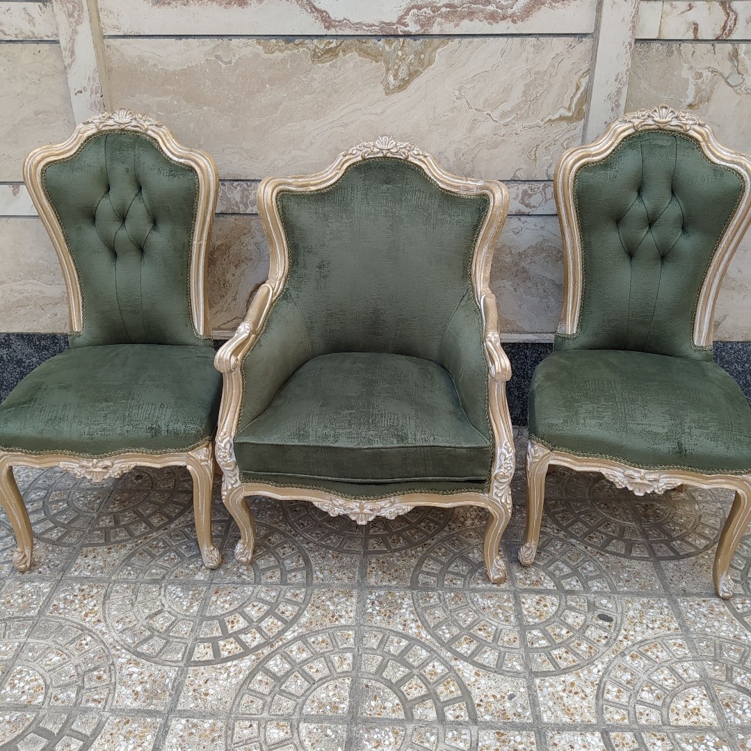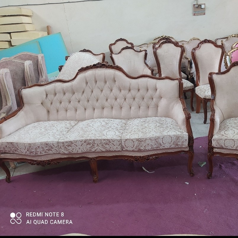سرویس 7نفره مبلمان ویکتوریا شامل کاناپه 3 نفره +1+1+1+1+میزجلومبلی و عسلی کلاف کار تمام چوب راش میباشد.کف کار فوم سرد 13 پیک فوم کار میشود .رنگ کار با کیفیت عالی پولی اورتان کار میشود .و رنگبندی پارچه و چوب به عهده مشتری میباشد .با ضمانت نامه کتبی 3ساله .و تحویل کار 10 روزه میباشد .مبلمان ایران چوب تولیدکننده انواع مبلمان و غذاخوری و سرویس خواب با 12 سال سابقه تنوع رنگ پارچه ها بالاست قسمت گفت وگو در خدمتم ارسال تهران رایگان شهرستان