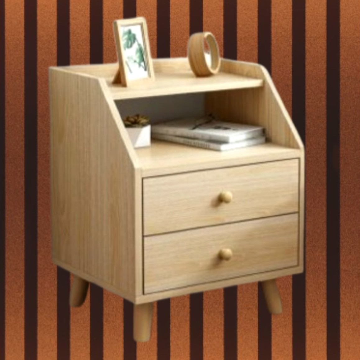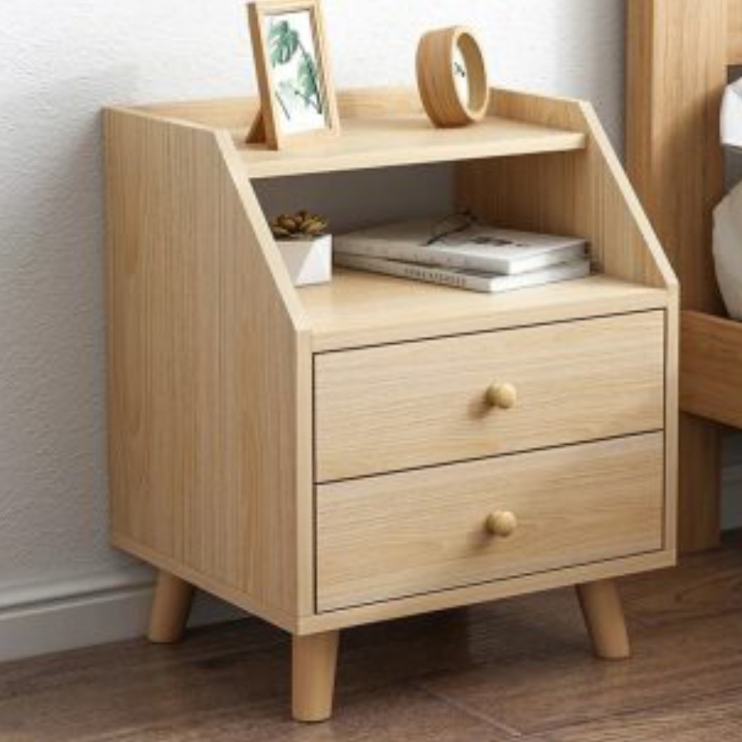 پاتختی تمام چوب دو کشو پایه خراطی 55-40-50 مبلمونسرا مدل 217998