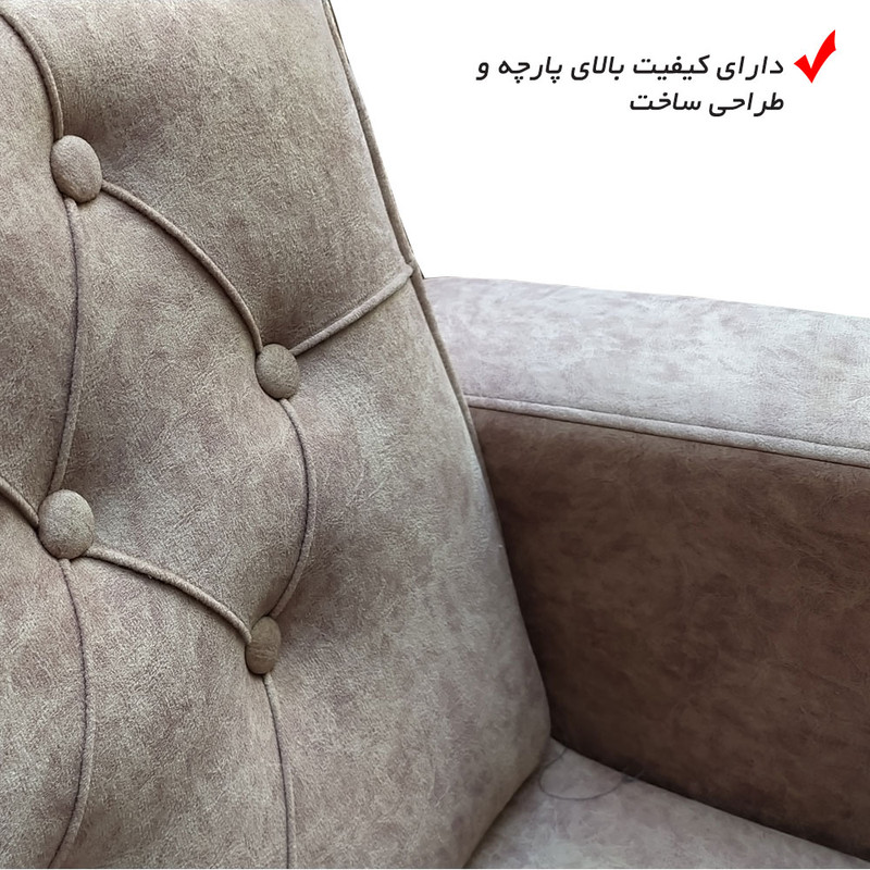 مبل راحتی تک نفره مدل میتواند تکمیلکنندهی فضای نشیمن شما باشد. همچنین میتوانید با دو عدد از این مبلها برای خودتان یک گوشهی دنج در منزل درست کنید که برای نوشیدن یک فنجان چای یا مطالعهی کتاب بسیار دلچسب خواهد بود. این مبل دارای پارچهای با کیفیت و مقاوم است و پایههای بلندی که دارد شما را از جابهجایی آن هنگام نظافت منزل و جارو کشیدن بینیاز میکند. . بدنه و کلاف به کار رفته در ساخت این مبل از جنس چوب است و در لایه ی میانی آن از فوم سرد استفاده شده است. فوم سرد مقاومت بسیار بالایی دارد و در طول زمان شکل خود را حفظ خواهد کرد. پارچه و طراحی این مبل به گونه ای است که برای نظافت آن مشکلی وجود نداشته باشد. در کنار زیبایی استحکام این مبل دارای قیمت اقتصادی بوده و هزینه ی بالایی برای شما در پی نخواهد داشت.