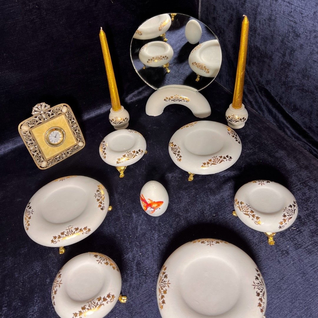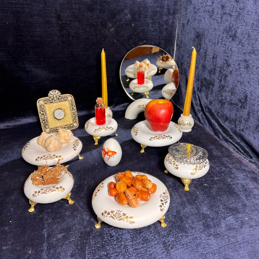ست هفت سین دوناتی پایه دار سنگ مصنوعی با آینه و شمعدان مبلمونسرا مدل 262450