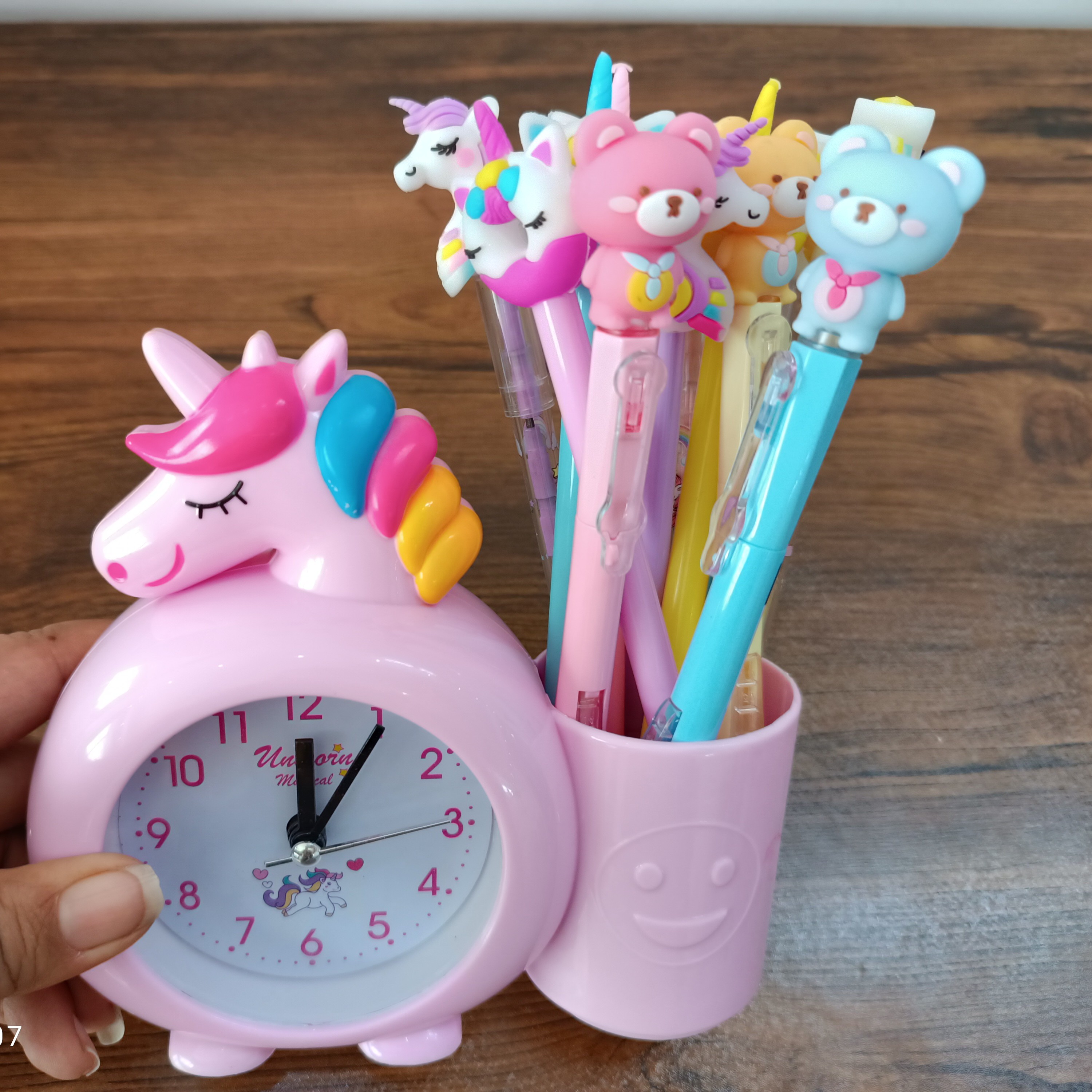 ساعت پونی جاقلمی دار سلام به همه دوستای خوش ذوق و خوش سلیقه🤚 ساعت رومیزی ما یه بدنه خوشگل و محکم داره که روش یه پونی کوچولو و بامزه چسبیده. پونی یه تاج قشنگ روی سرش داره😍 ساعت پونی جاقلمی دار علاوه بر اینکه یه ساعت دقیق و کاربردیه، یه جاقلمی هم داره که می تونید انواع خودکار، مداد و پاک کن رو داخلش بذارید. اینطوری هم میز کارتون مرتب می مونه و هم همیشه به لوازم التحریر مورد نیازتون دسترسی دارید😌 لطفا قبل از خرید موجودی را از طریق گفتگو هماهنگ کنید