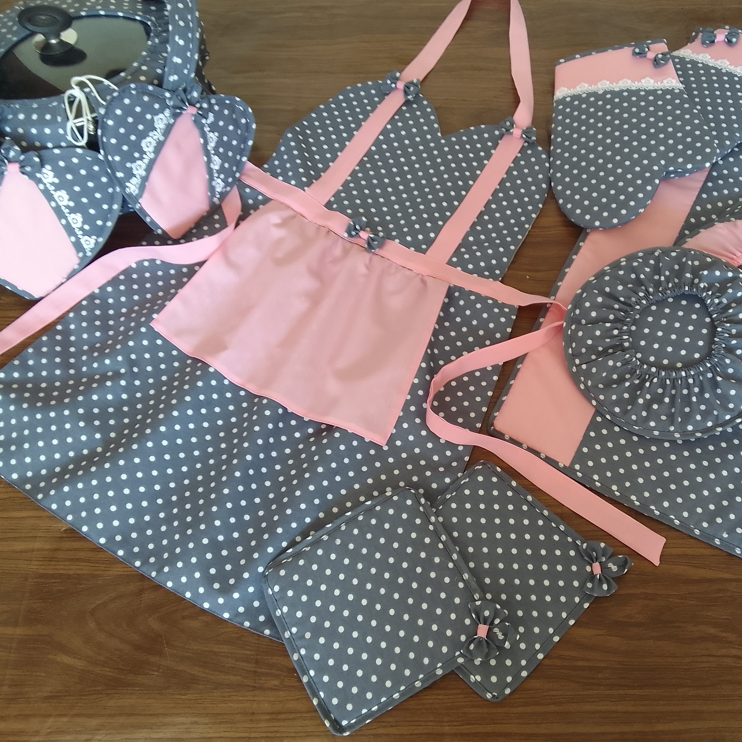 تکه ها شامل دمکنی سه تکه نمگیر پیشبند دستکش فر کاورقابلمه دستگیره قلب دوعدد دستگیره مربع دوعدد