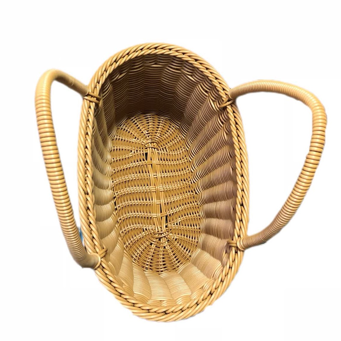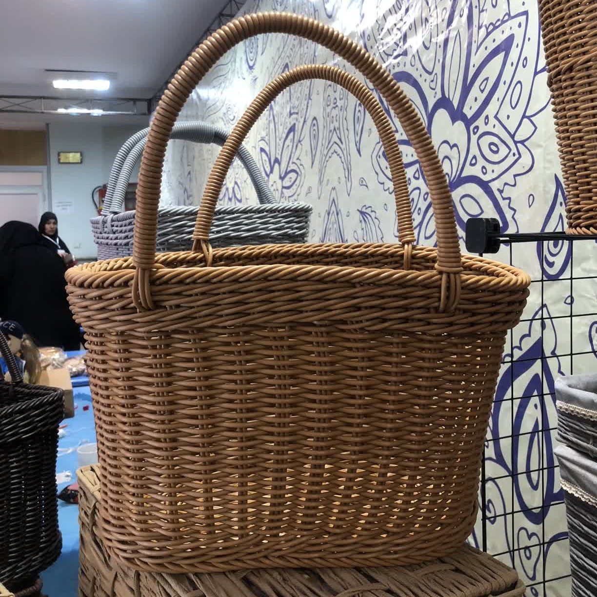 زنبیل و سبد پیک نیک خرید بافت کار با نخل پلاستیکی بسیار محکم و مقاوم تحمل وزن تا ۳۹ کیلو گرم موجود در ۳ قهوهای تیره قابل شست و شو با انواع شوینده طوسی روشن و عسلی رنگ مورد نظر قبل ارسال هماهنگ شود در صورت موجود نبودن رنگ انتخابی محصول به شکل رندوم ارسال میشه
