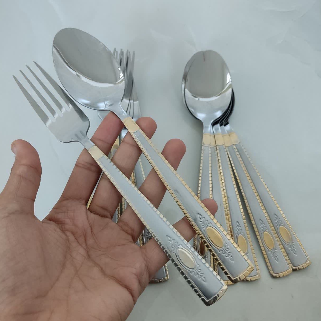 ✅ سرویس قاشق و چنگال استیل طلایی یونیک رنگ طلایی ثابت جنس استیل آهنربا بگیر به خاطر داشتن نیکل در آن زنگ نمیزند و جنسشون عالیه