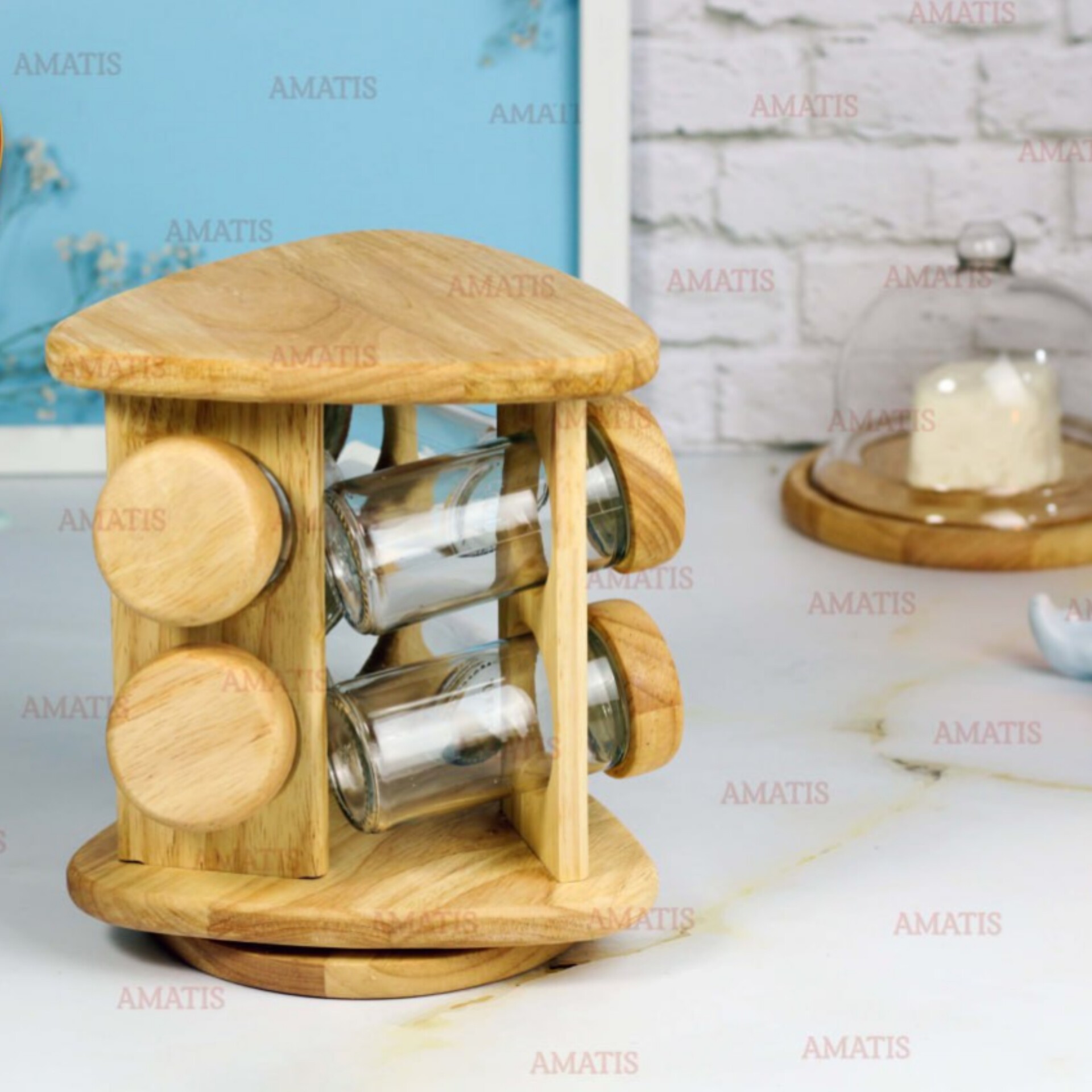جا ادویه چوبی کد 99066 ایستاده 6 تایی گردان مثلثی از برند لونا وود مبلمونسرا مدل 295063