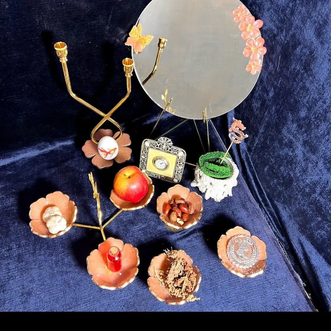 سفره هفت سین رزینی هلویی جام گل و اردو خوری و آینه و شمعدان مبلمونسرا مدل 262451