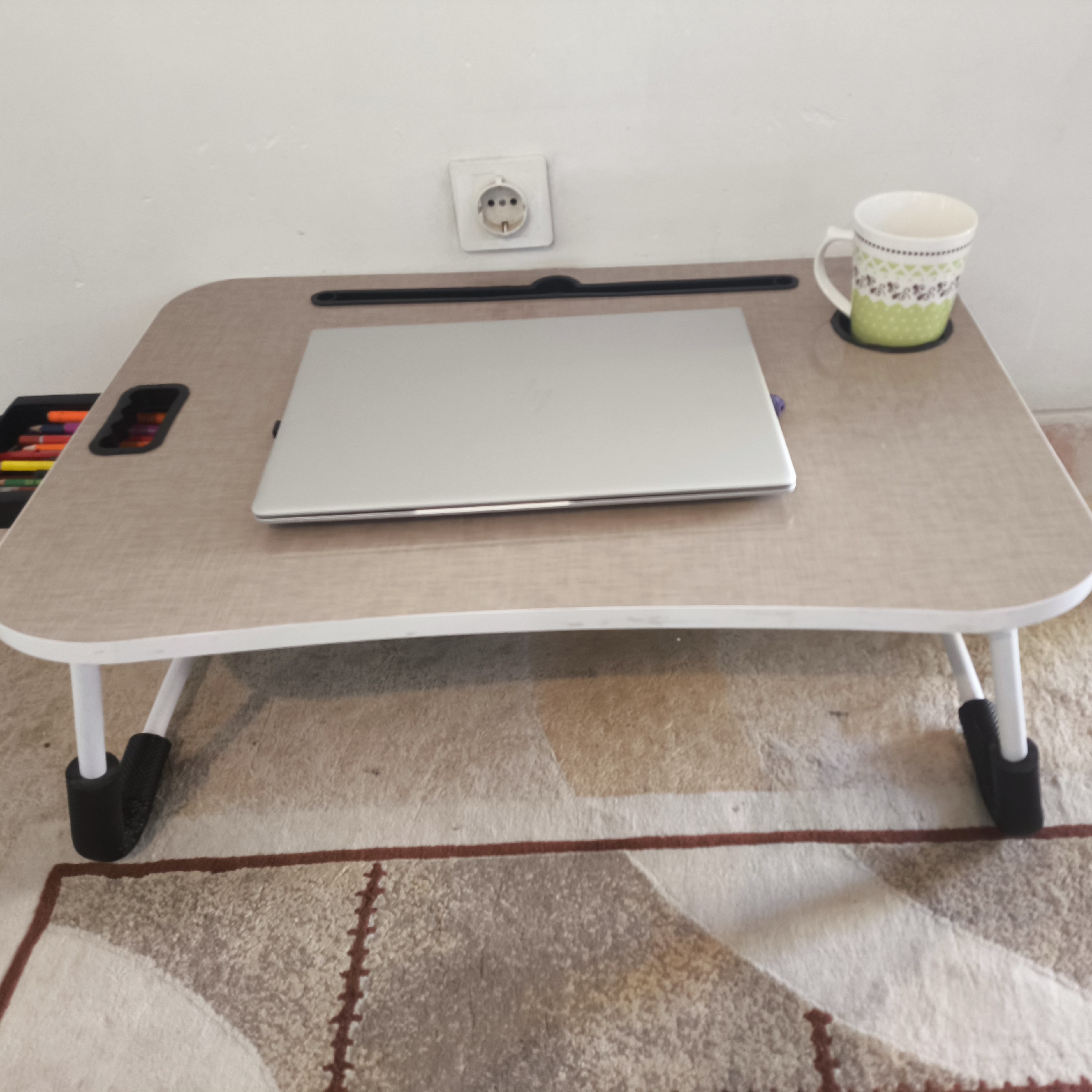 میز تحریر تاشو مناسب لپ تاپ و تبلت و گوشی با امکاناتی منحصر بفرد و با کیفیت ترین قطعات با صفحه ای از جنس ام دی اف و پایه های فلزی ضد لغزش شامل: جالیوانی، جاتبلت و گوشی دستگیره، جامدادی کشویی که در دو رنگ سفید و مشکی می باشند معمولا همگی سفید یا همه مشکی می باشند . به صورت تصادفی و یا به صورت سفارشی سایز: 40*60با ارتفاع 26سانتیمتر سفید براق وایت بردی با توجه به ارتفاع این میز برای کودکان تا 12سال پیشنهاد می شود . 🌹لبه های میز با پی وی سی رنگ سفید کار شده 🌹 این میز مناسب برای استفاده روی زمین،تخت،مبل،بصورت نشسته یک میز سبک و قابل حمل🌹 این میز تاشو برای لپ تاپ، تبلت و تلفن همراه یا ساختن صنایع دستی مناسب است. همچنین می توان برای استفاده آن را روی مبل یا زمین بگذارید . قسمت بالای میز محلی به طول 28 سانتی متر طراحی شده است که می توان از آن برای قرار دادن موبایل ، تبلت ، کتاب و .... استفاده کرد و از دو شیار دایره ای شکل سمت چپ و راست برای قرار دادن قلم خودکار ماژیک و .... استفاده می شود. علاوه بر این یک نگهدارنده فنجان وجود دارد عمق آن 3.5 سانتی متر و قطر داخلی آن 7.5 سانتی متر است و بدون نگرانی از ریختن نوشیدنی ، فنجان خود را در آن قرار دهید. یک کشو در زیر میز بعنوان جامدادی قرار گرفته صفحه این میز از MDF درجه یک موجود در بازار ایران وقطر16میلیمتر ساخته شده و پایه لوله از جنس آهن با رنگ استاتیک ساخته شده است. این میز دارای طراحی خمیده ارگونومیک ، محکم و بادوام است و تحمل وزن تا 45 کیلو گرم را دارد. میز بسیار سبک و حمل آن آسان است. این میز نیازی به نصب ندارد و هنگام باز شدن می توان مستقیماً از آن استفاده کرد 🌹 می توان به عنوان یک میز کوچک پیک نیک نیز استفاده شود.🌹 🌹🌹🌹🌹🌹🌹این میز بصورت بدون جای دسته ویا هر تغییر قابل اجرا هم قابل سفارش می باشد فقط قبل از خرید هماهنگ کنید🌹🌹🌹🌹🌹🌹