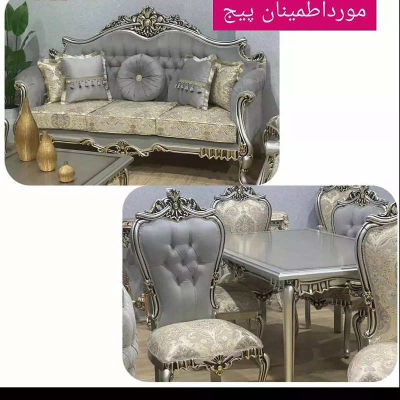 سرویس مبل سلطنتی مدل افیسون نشیمن نه نفره باترکیب جلومبلی وعسلی چوب راش گرجستان و گردو به سلیقه مشتری پارچه بدنه نانو وارداتی پارچه طرح دار شانل تراکم 480 فوم سرد13سانت شرکتی بسپار غرب اسفنج30کیلو ویژه جاجرود شرایط فروش نقد واقساط حضوری و سفارش آنلاین فقط یک سوم نقد والباقی چک6ماهه تمام سری محصولات الزهرا دارای دوسال ضمانت کتبی مورد تایید اتحادیه میباشد ودارای خدمات پس از فروش معتبر خودمجموعه میباشد اجرای تمام مراحل کار با رویت مشتری انجام خواهد شد