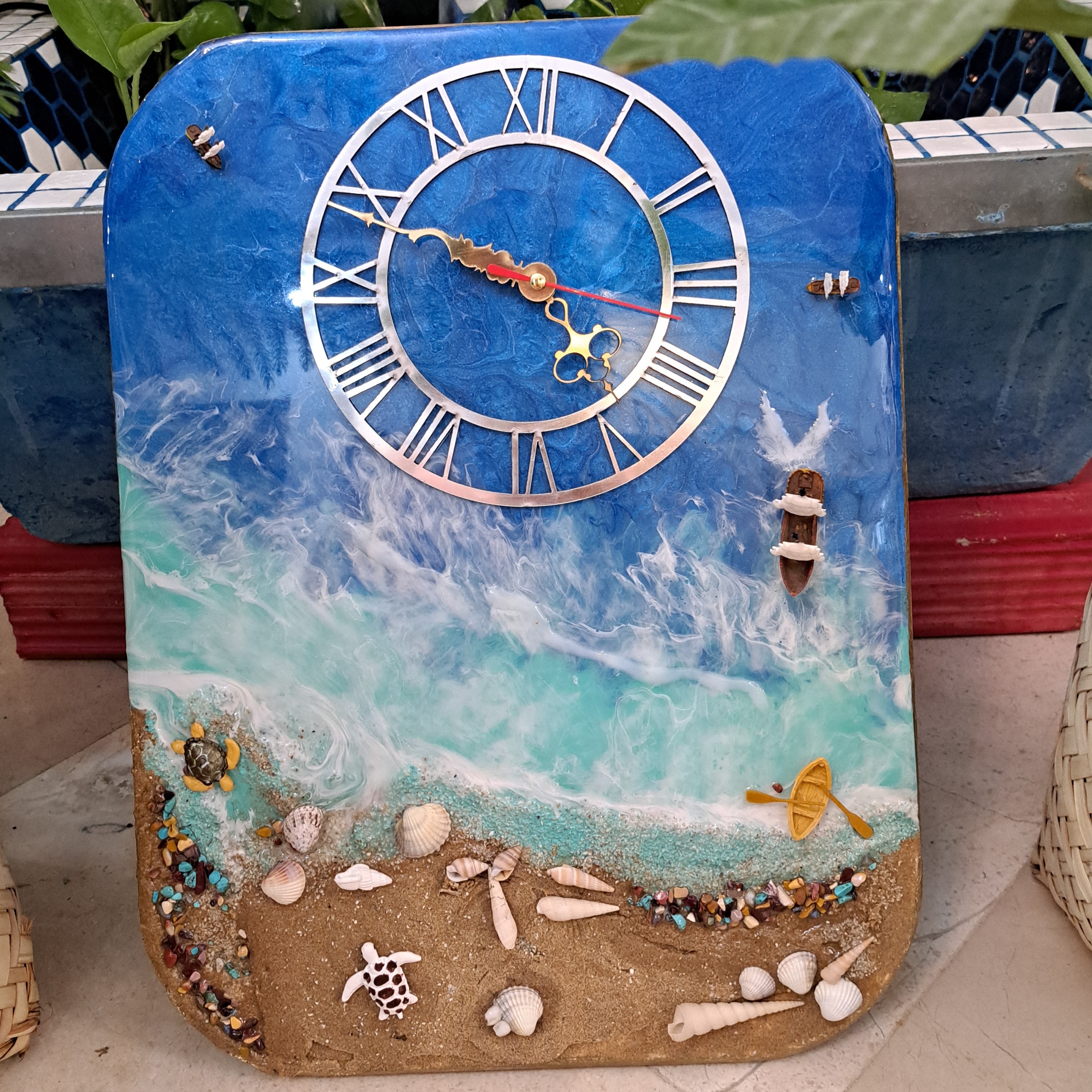 ساعت رزین دریایی قابل سفارش در. سایزهای مستطیل و دایره به سلیقه شما با لاک پشت و صدف و کشتی و....
