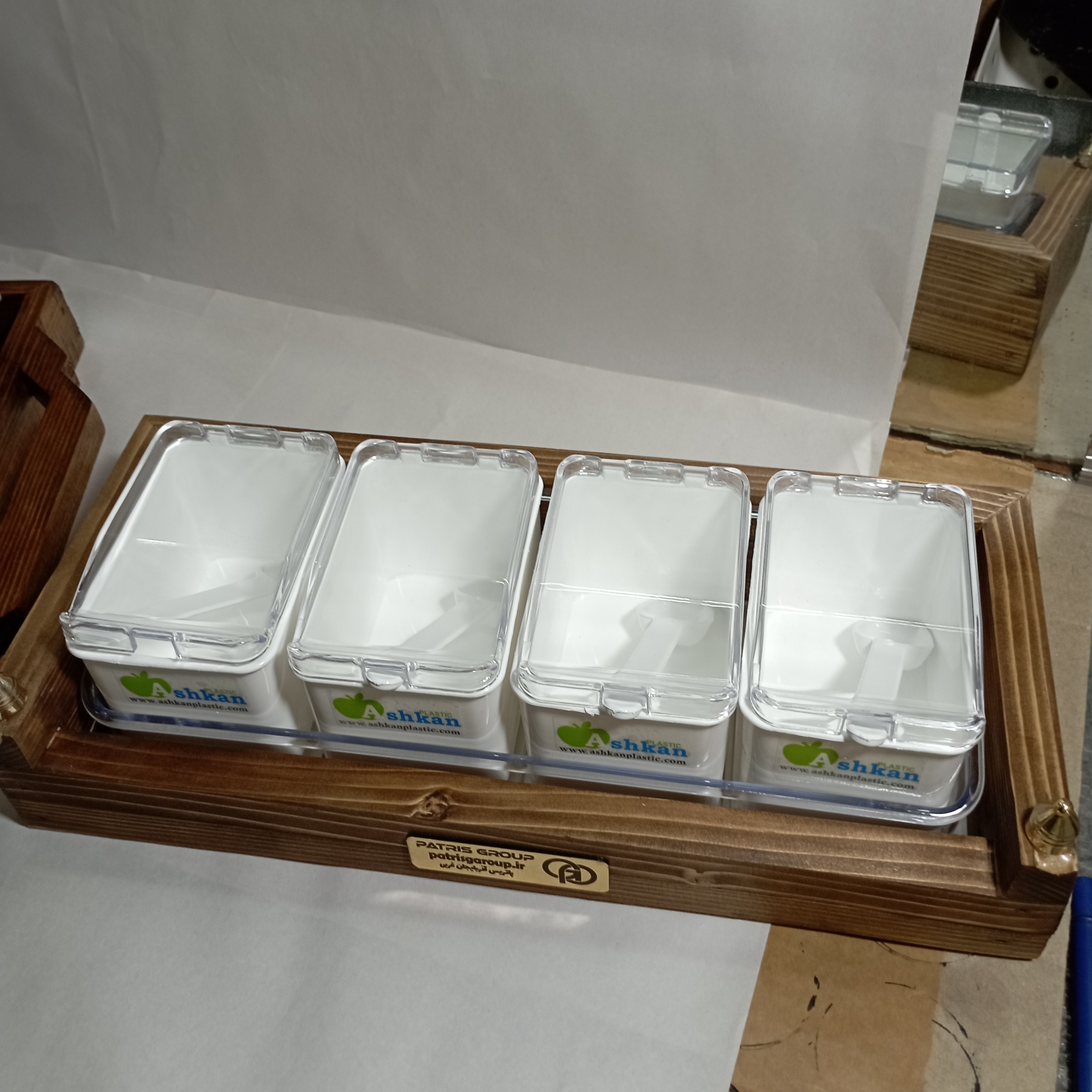 این محصول جای ادویه 10تیکه که شامل 4عددظرف ادویه پلاستیک -4عددقاشق پلاستیک -1عددچهارچوب که همان نظم دهنده ظروف ادویه جات هست اش که جنس چوب روس وارداتی ویکی هم داخل چوب که اونم از جنس پلاستیک شیشه ای میباشد که درابعاد32*14میباشدبایک سال گارانتی تعویض رایگان پس با خیال راحت دیکوراشپزخانه ات رامدرن بچین که تمام محصولات پاتریس خاص پسندهستن درودبرشما.