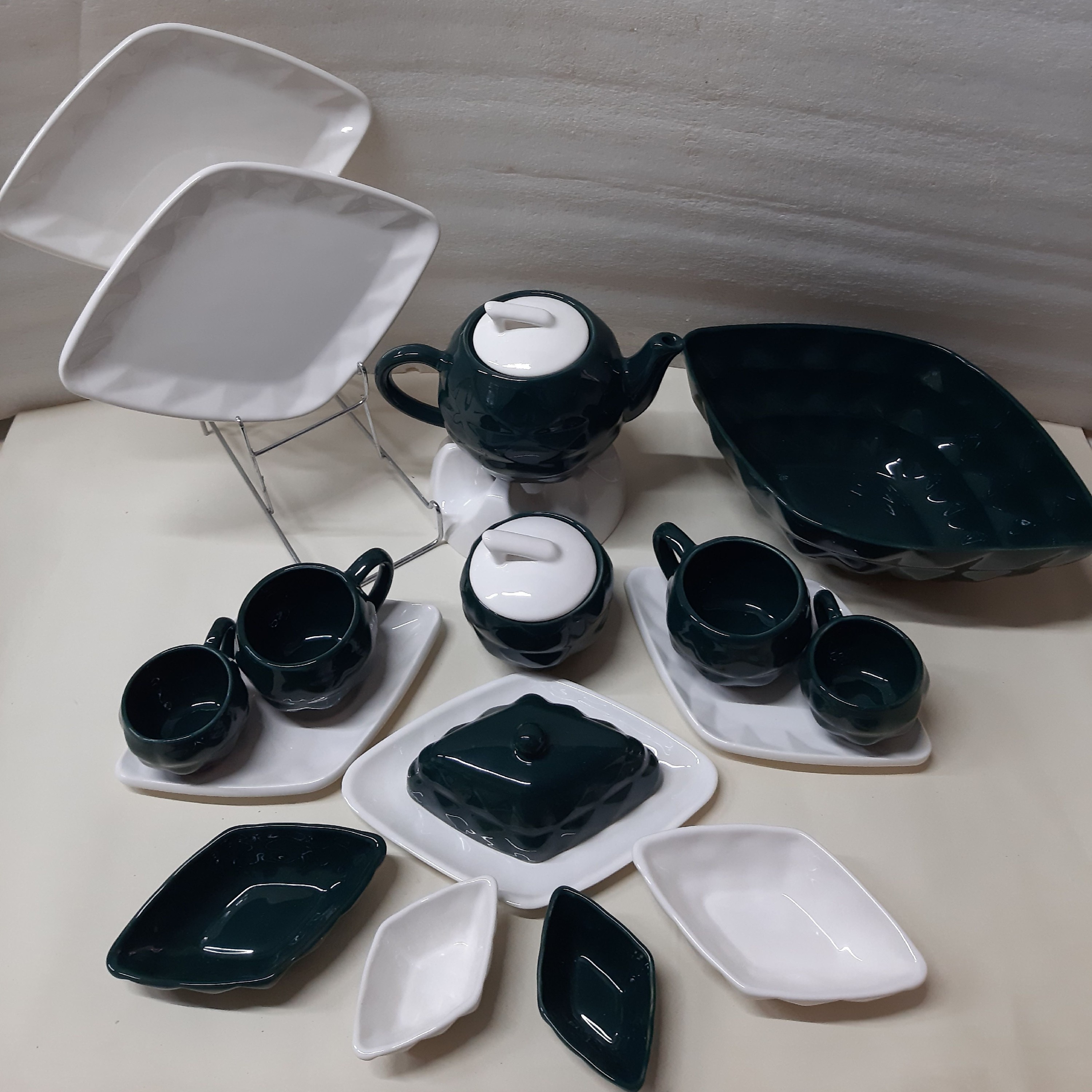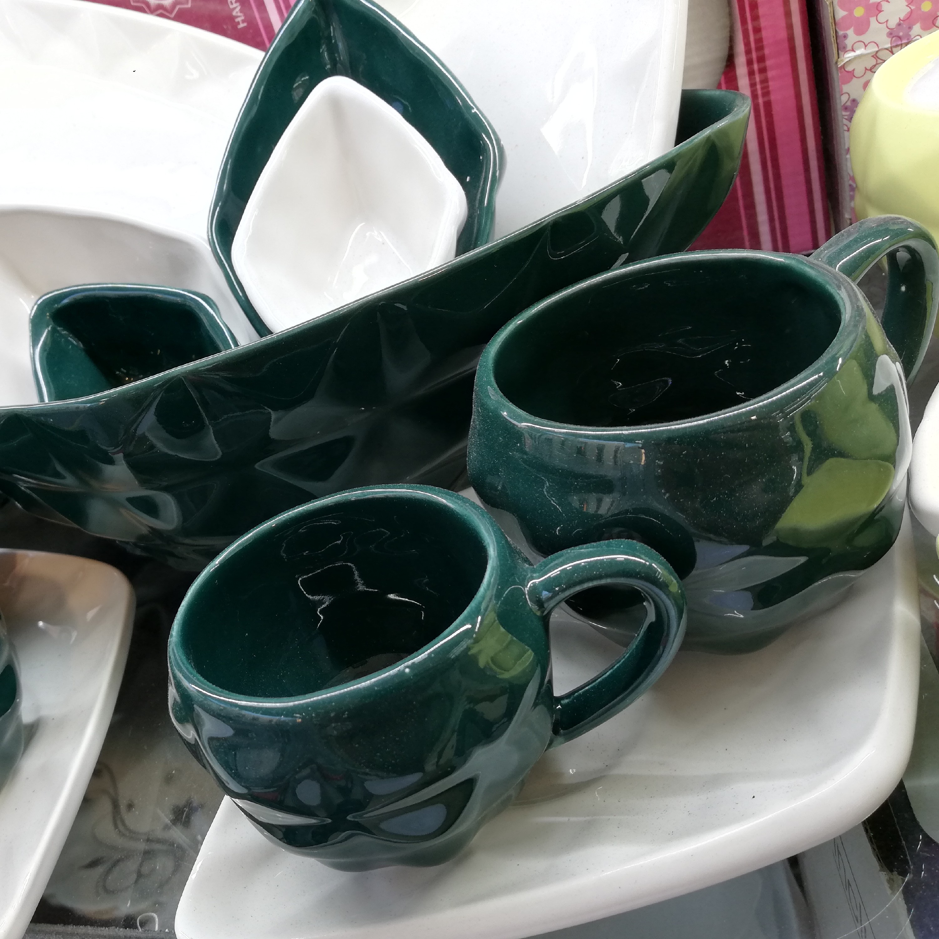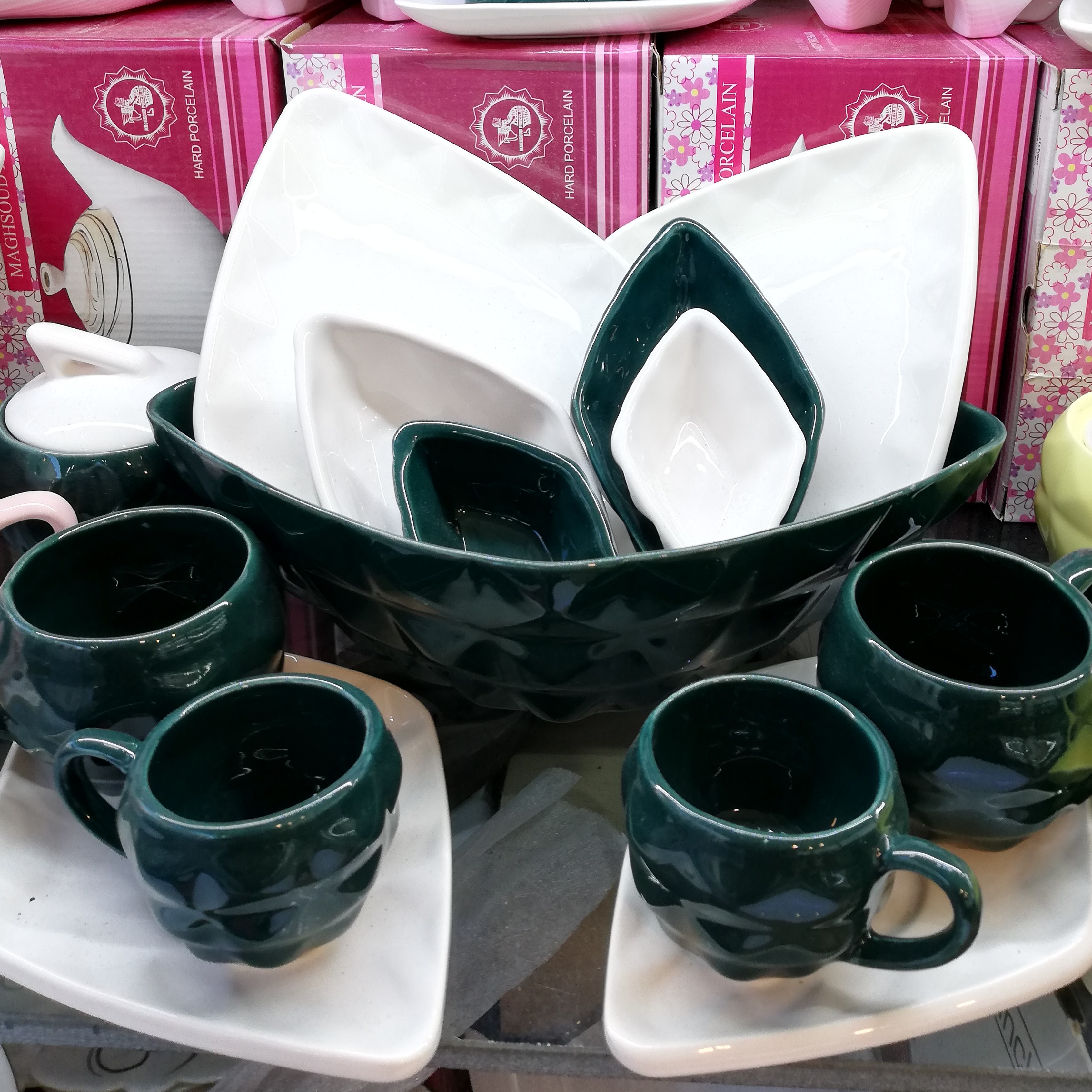 سرویس صبحانه خوری سرامیکی 20پارچه با کيفيت و لعاب بالا در چهار رنگ سبز، صورتی، زرد، کله غازی ارسال به سرتاسر کشور با ضمانت کالا ⭕رنگ کله غازی، به رنگ سبز پررنگ میباشد ⭕