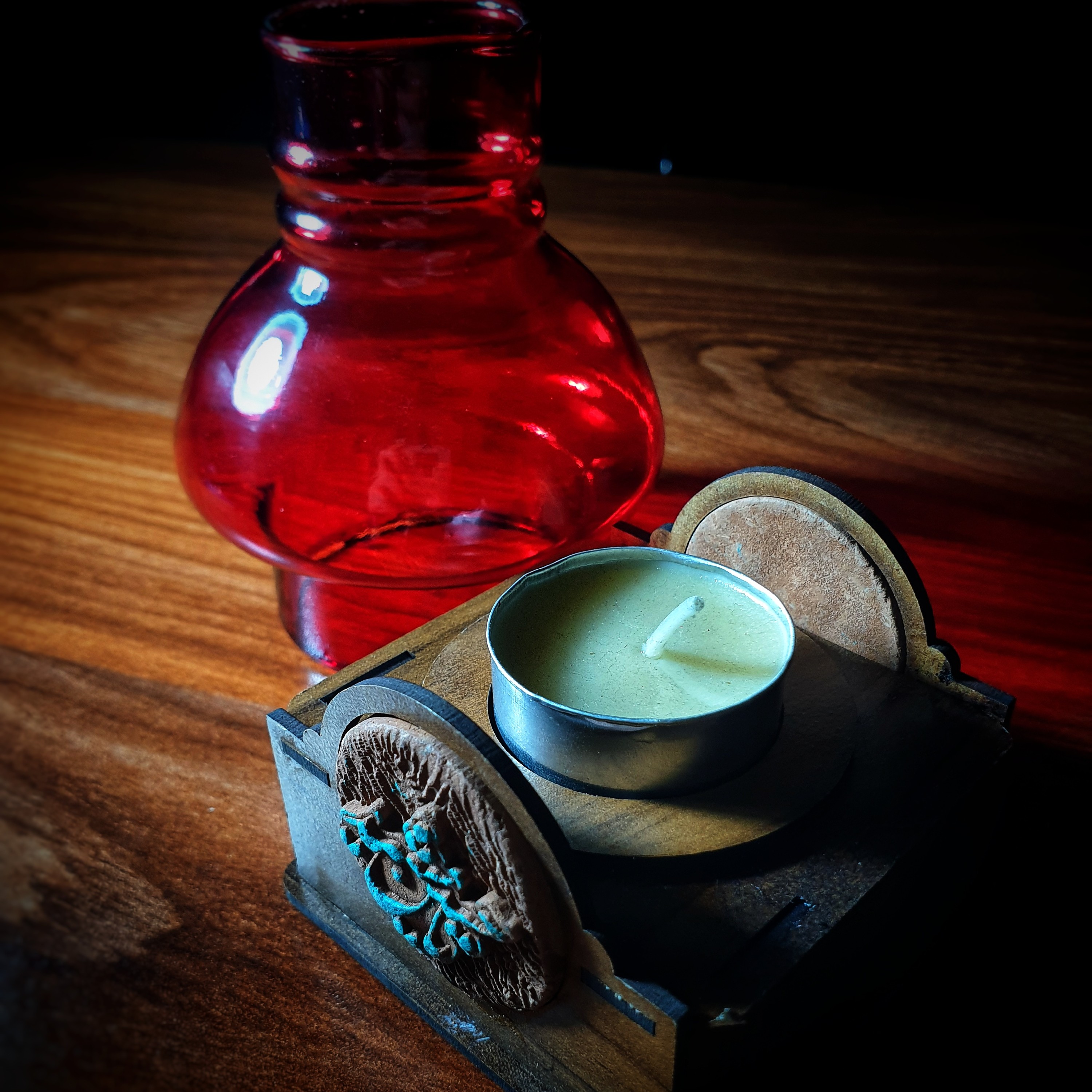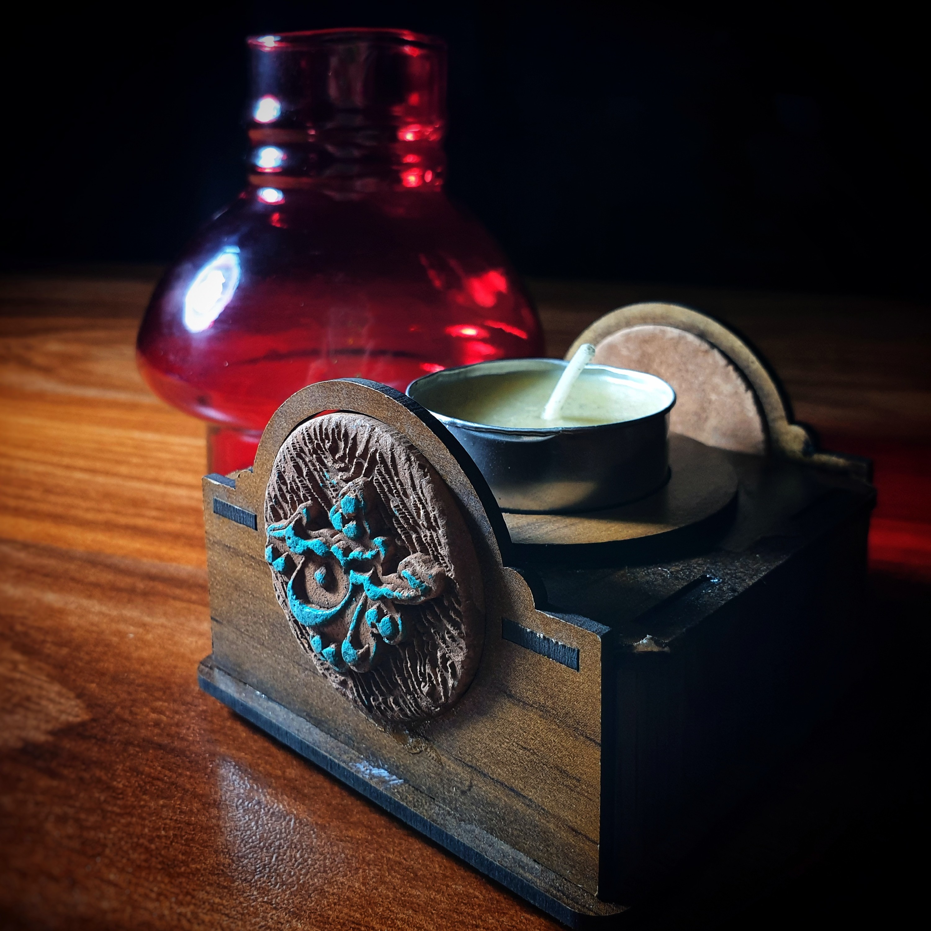 جاشمعی گردسوز سنتی، روشنایی با شمع وارمر، پلاک سفالی یا مولتی استایل طلایی اسامی ائمه، همراه با جعبه مبلمونسرا مدل 279570