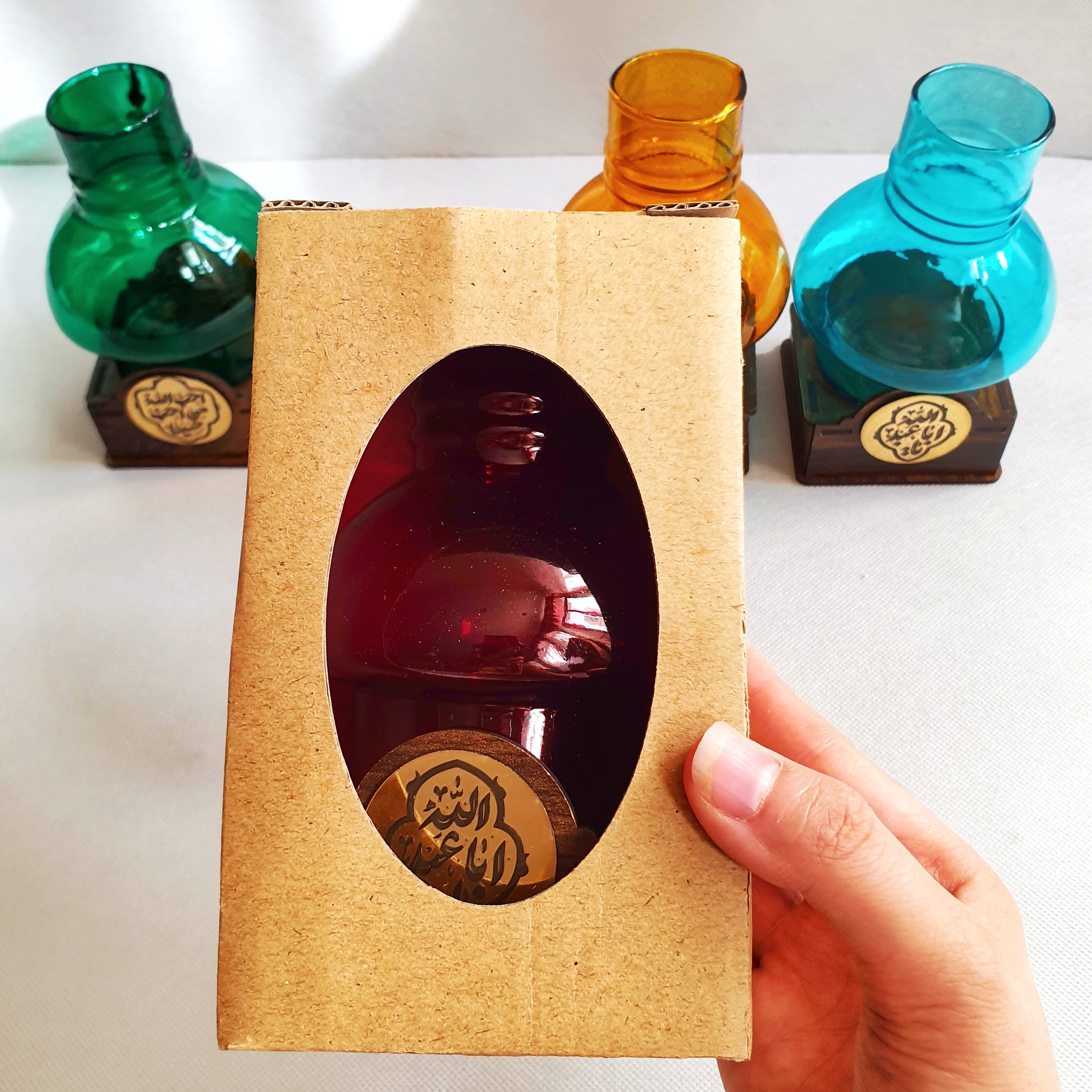 جاشمعی که به شما حس گردسوزهای قدیمی رو میده و وقتی شمع داخلش قرار میگیره، دود شمع دیگه شمارو اذیت نمیکنه. از این جاشمعی میتونید برای مراسمات مذهبیتون، تزئین میز کارتون، کنار عکس عزیزان از دست رفتهتون و... استفاده کنید. 2مدل داره، پلاک سفالی، پلاک مولتی طلایی اگر در قسمت گفتگو مدل انتخاب نکنید، به انتخاب خودمون ارسال میشه. توجه توجه: با احترام، متن روی پایه ها قابل انتخاب نیست و بصورت رندومی از موجودی انبار ارسال میشود. نکته مهم‼️ برای تمیز نمودن، از شستن شیشهها با آب و شوینده جدا خودداری کنید. رنگ شیشهها کوره ای نیست. جهت تمیز نمودن شیشه از دستمال نمدار استفاده کنید. از خراشیدن با اسکاچ و وسایل زبر جدا خودداری فرمایید. توجه: شمع جزء محصول نیست و جداگانه قابل تهیه است. ‼️‼️‼️‼️‼️‼️‼️‼️ سقف ارسال این محصول با پست، فقط 5عدد می باشد. درصورتی که بیشتر از 5عدد سفارش داده شود با باربری ارسال خواهد شد و هزینه آن خواهد بود. لطفا دقت بفرمایید.‼️‼️‼️