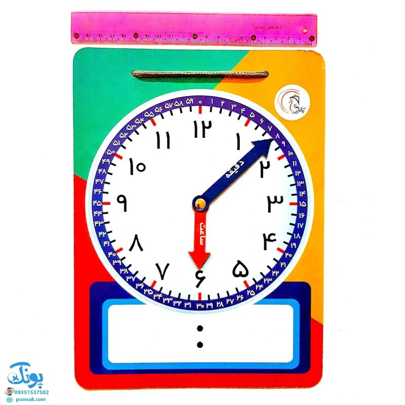 ساعت آموزشی وایتبردی در واقع یک ساعت مقوایی پایه دار با عقربههای متحرک است که با هدف آموزش ساعت و زمان، یکی از ابزارهای کاربردی برای دانشآموزان مقطع دبستان محسوب میشود. با استفاده از این ساعت دانشآموزان به راحتی میتوانند مفهوم ساعت و دقیقه را بیاموزند. در بخش زیرین ساعت، محلی برای نوشتن عدد ساعت و دقیقه به صورت وایتبردی طراحی شده است که میتوان برای تمرینات آموزش ساعت بارها و بارها از آن استفاده کرد. دو رو ساعت فارسی و لاتین ) سایز 21*28 CM