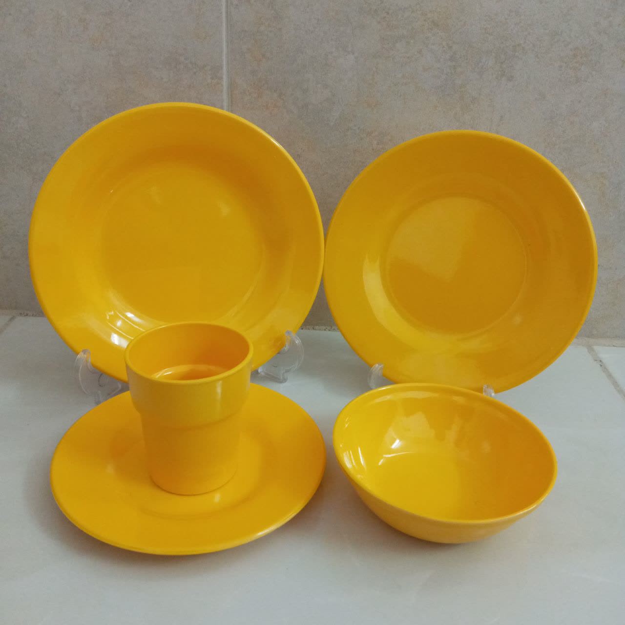 ✅سرویس غذاخوری کودک 5تیکه ملامین نشکن پشت محصول استاندارد حک شده مارک یزد ملامین جنس ملامین نشکن 💯 مناسب برای کودک رنگ های زرد و سبز و نارنجی و صورتی موجود هست رنگ مورد نظر را داخل گفتوگو بفرستید🌹 در غیر این صورت رنگ زرد برایتان ارسال میشود سرویس شامل 🌱🌿 یک عدد لیوان ابعاد 7 در 8 یک عدد ماست خوری ابعاد 12.5 در 4 یک عدد برنج خوری ابعاد 18.5 یک عدد سوپ یا خورشت خوری ابعاد 20 یک عدد میوه یا شیرینی خوری ابعاد 16.5