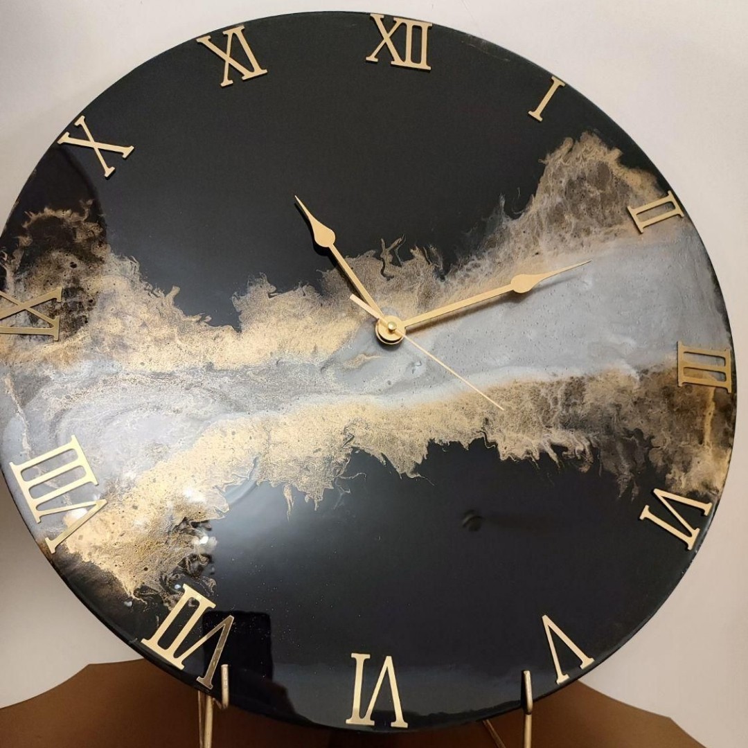 ساعت دیواری رزینی دست ساز لوکس بهترین انتخاب برای دیوارتون که هم اثر هنری وهم ساعت وهم با رنگ وسایل خونه میتونی ست کنی کارشده بر روی چوب 16میل مولتی استایل خارجی موتور آرامگرد بی صدا