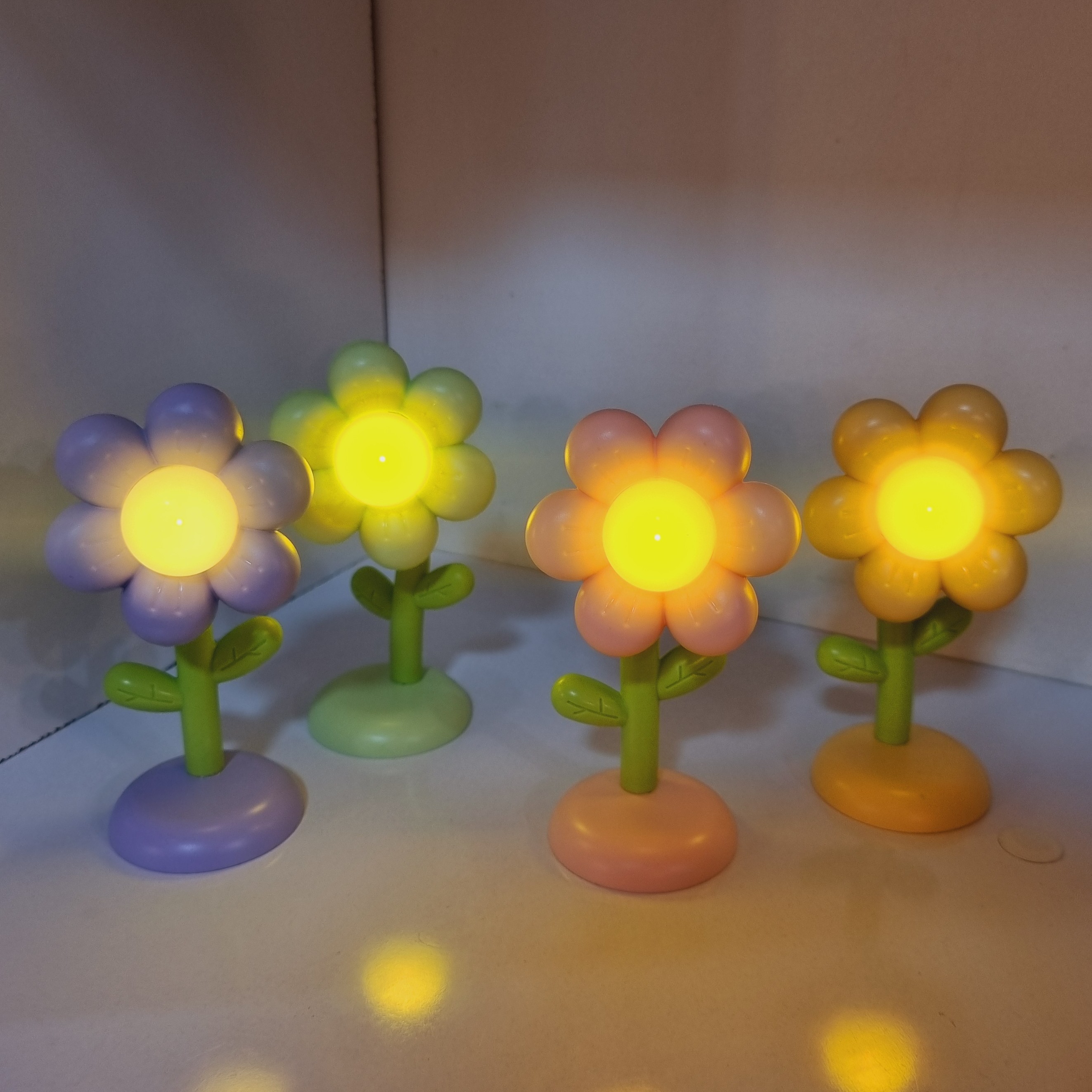 چرا غ خواب فانتزی گل چراغ 10/5 سانت میباشد در 4 رنگ پاستلی باطری خور دارای سه عدد باطری اضاف