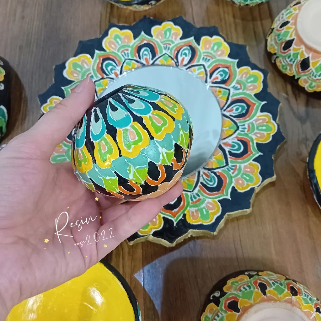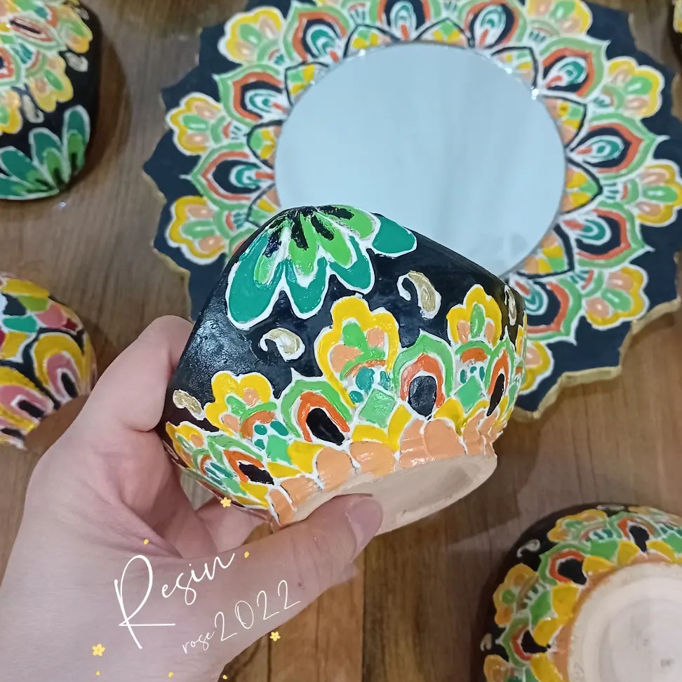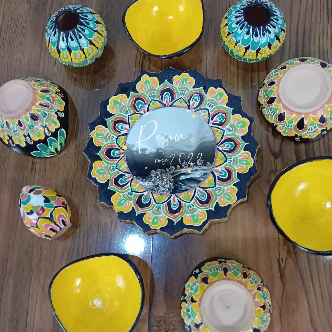 سلاملیکم 🫡 هفت سین سفالی ده تیکه شامل شیش تا پیاله دوتا شمعدانی یک آینه و تخم مرغ ساخته شده با سفال و لعاب پس ضد خش و قابل شستن در خدمتم