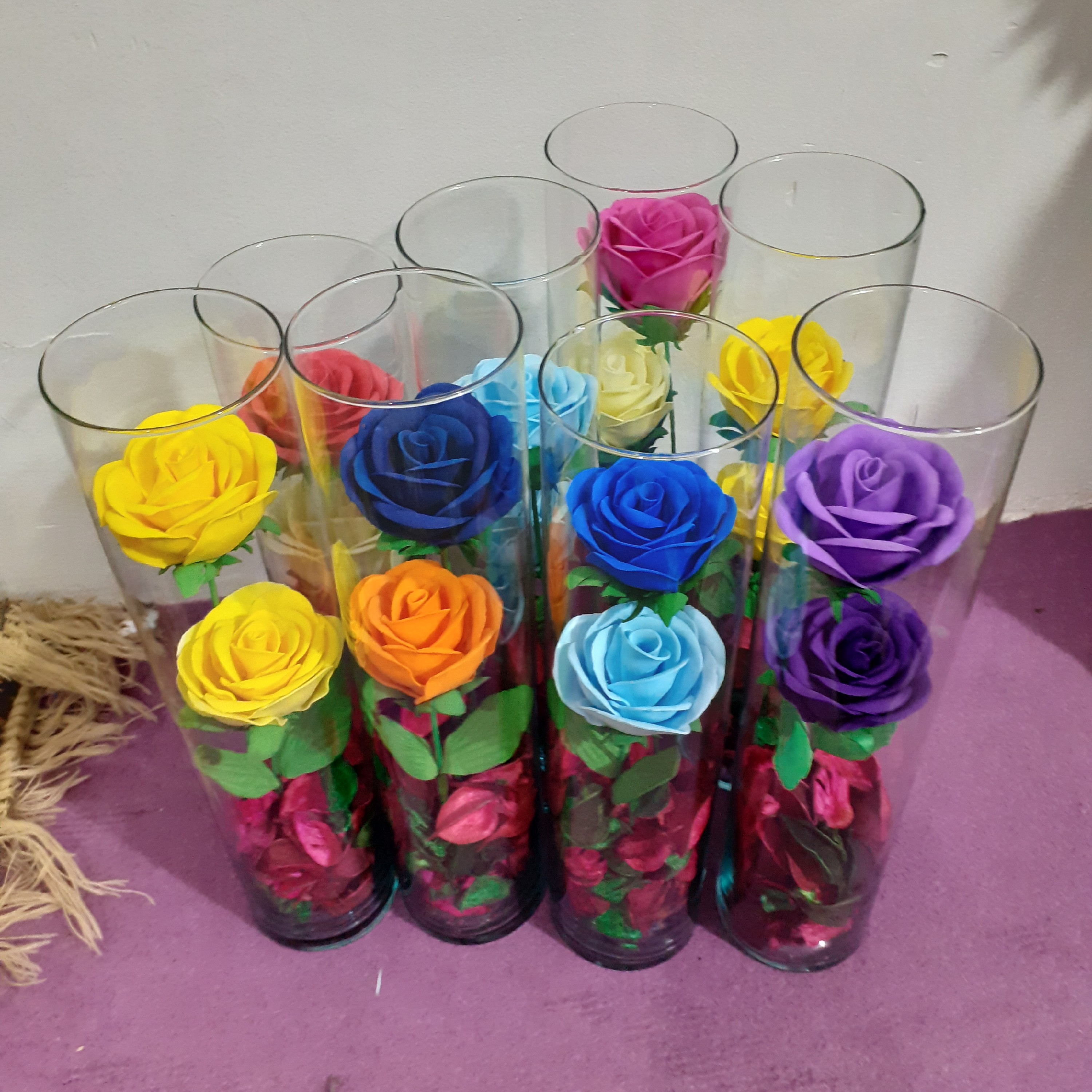 گل رز دستساز به صورت شیشه استوانه ای قیمت درج شده قیمت عمده میباشد