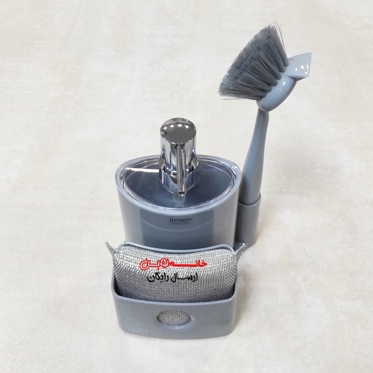 ست جامایعی بیضی لیمون رنگ طوسی جنس پلاستیک پمپ فشاری رنگ کروم دارای محل نگهداری اسکاچ ارســــــال رایگان