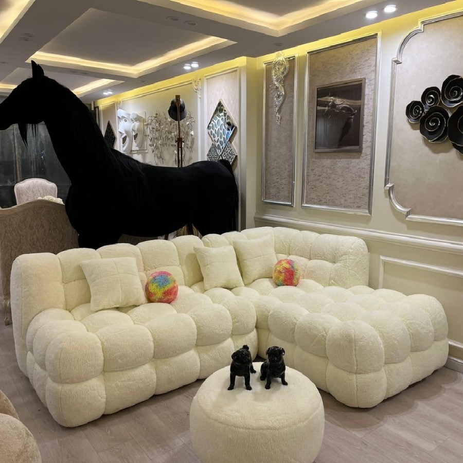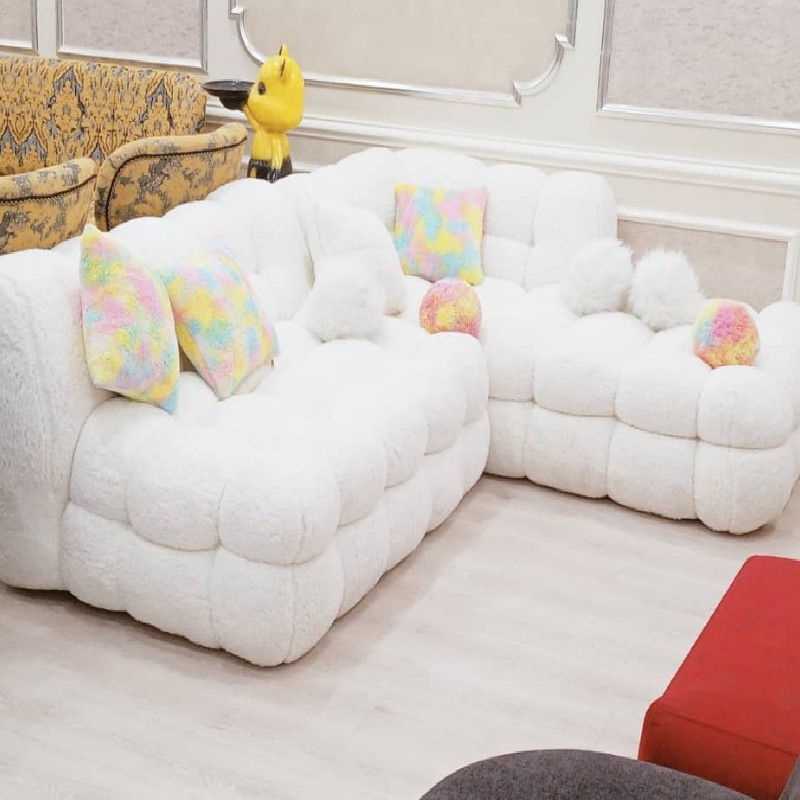 مبل راحتی ال مناسب جلو تی وی کنج خونه خونه های کوچیک خونه مجردی ویلا تولید شده از بهترین مواد اولیه شرکتی تمام چوب با روکش پارچه تدی