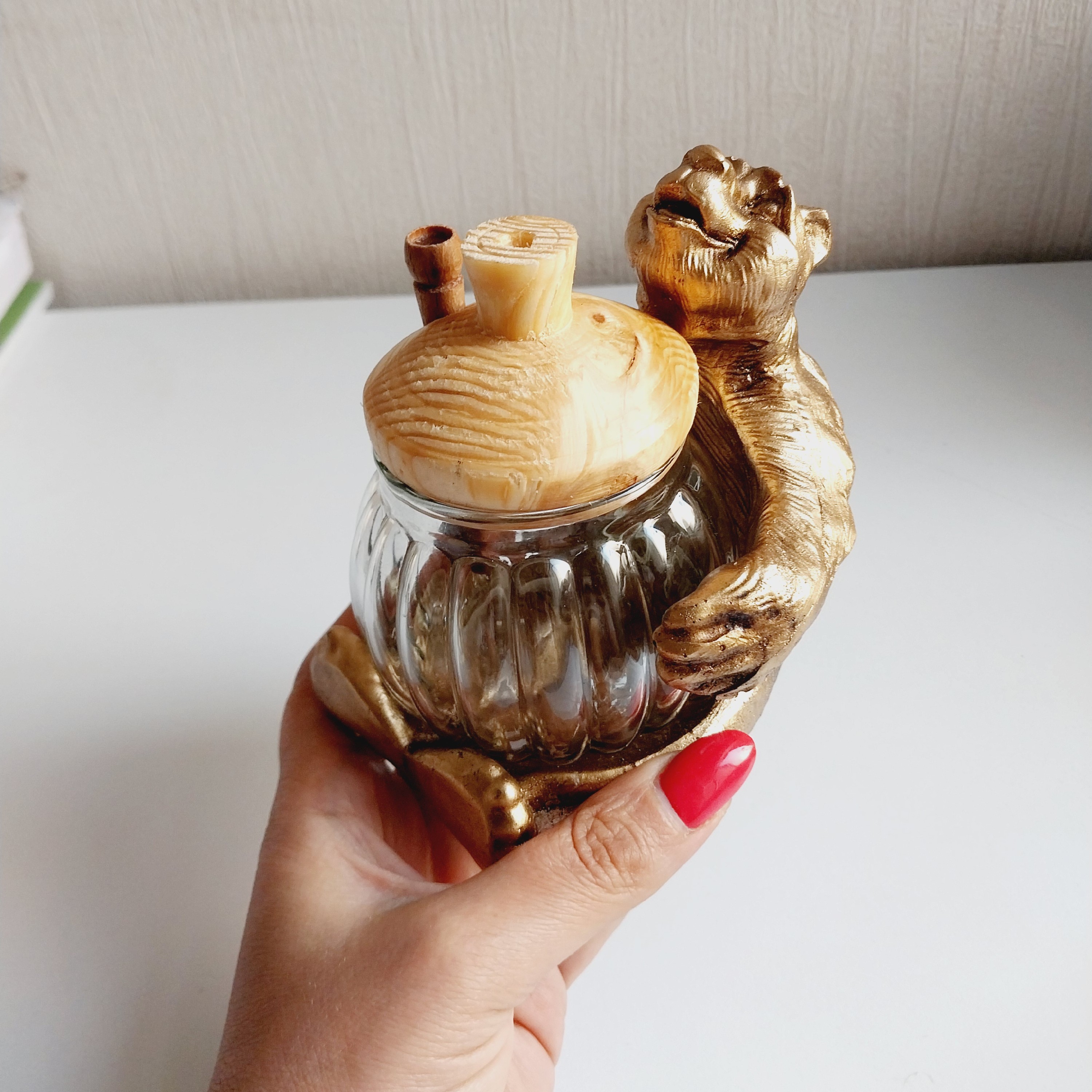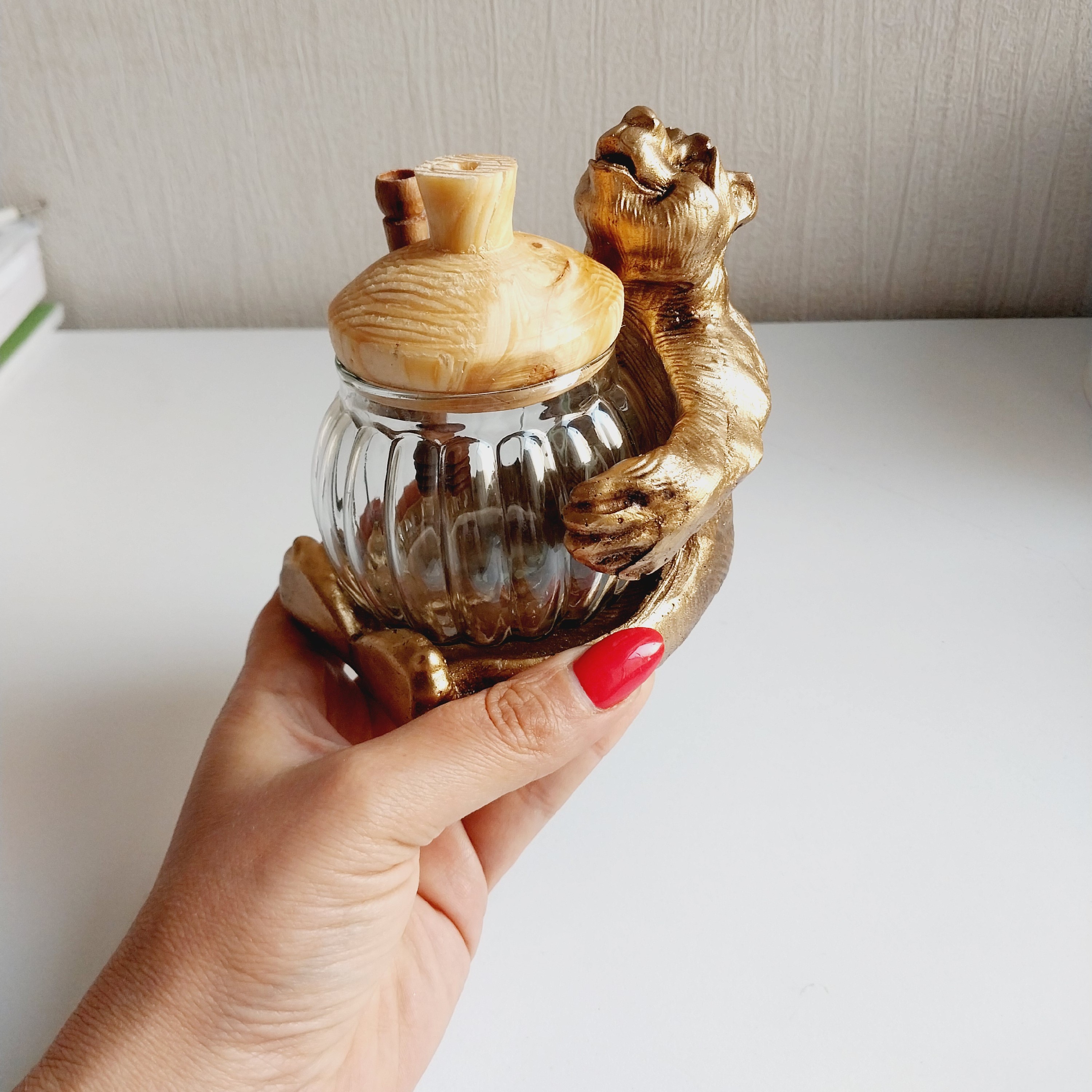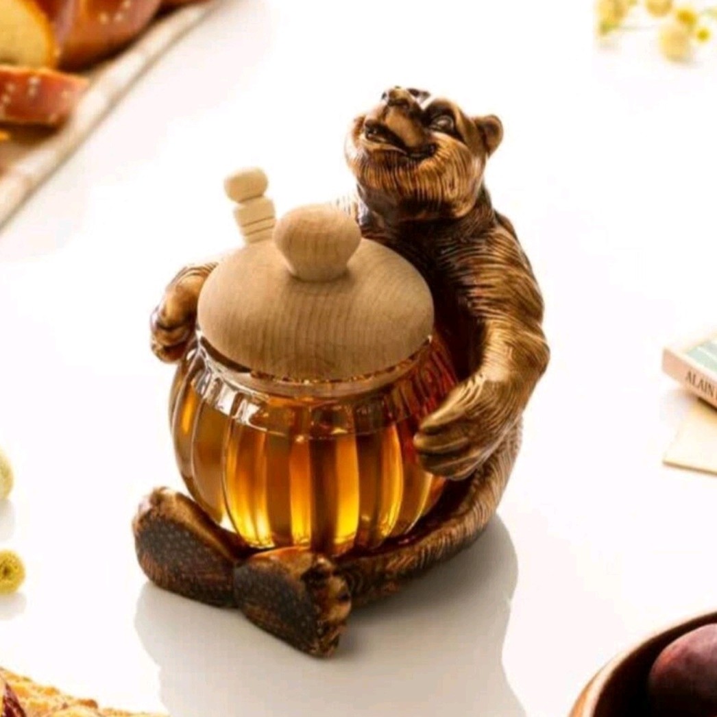 ظرف عسل با آقا خرس شکمو جنس پلی استر ظرف عسل شیشه ای
