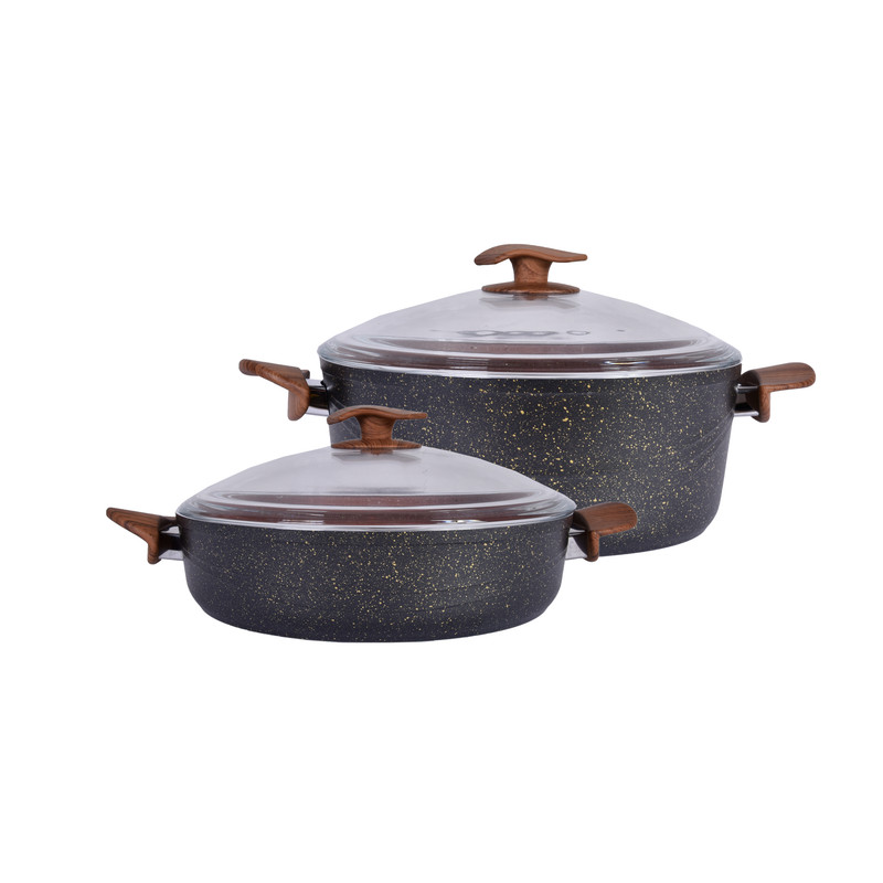 سرویس پخت و پز اِویز از نظر کیفیت در سطح مطلوبی قرار دارد و انتخاب مناسبی برای طبخ غذاهای مختلف بهحساب میآید. دستههایی از جنس باکالیت و درپوشهایی از جنس شیشهای پیرکس دارد. نکته مهم که این سرویس را نسبت به سایر ظروف متمایز میکند عدم وجود زوار استیل یا فلزی در دور درب ظرف می باشد که به جهت حفظ بهداشت و عدم تجمع میکروب در سطح بسیار مهم و حایز اهمیت می باشد. ظروف آشپزی اِویز به روش و از آلیاژ ویژه با بکارگیری تکنولوژی روز دنیا برای اولین بار در ایران تولید میگردند، پوشش نچسب گرانیت به کار رفته در این سرویس ها از بهترین مواد اولیه استفاده شده است. بهداشتی بودن لبه درب تمام شیشه و تعبیه سه برجستگی در لبههای پیرکس جهت خروج بخار، دارا بودن نشان استاندارد Bio آلمان به عنوان تضمین حفاظت از محیطزیست، استحکام و سختی بسیار بالای محصول و عدم شکنندگی از سایر ویژگی های این محصول می باشد. همانطور که در بالا اشاره شد جنس دسته و همچنین قپه درپوش باکالیت بوده که از مقاومت بالایی دربرابر حرارت برخوردارند. کفهی بیرونی ظروف هم ضدخش طراحی شده است و در صورت استفاده روی انواع اجاقگاز، آسیبی متوجه آنها نخواهد بود. برای طول عمر بالای ظروف گرانیتی بهتر است از ماشین ظرفشویی به هیچ عنوان استفاده نکنید و فقط با یک تکه اسفنج نرم و مایع شویندهی ملایم آن را بشویید.