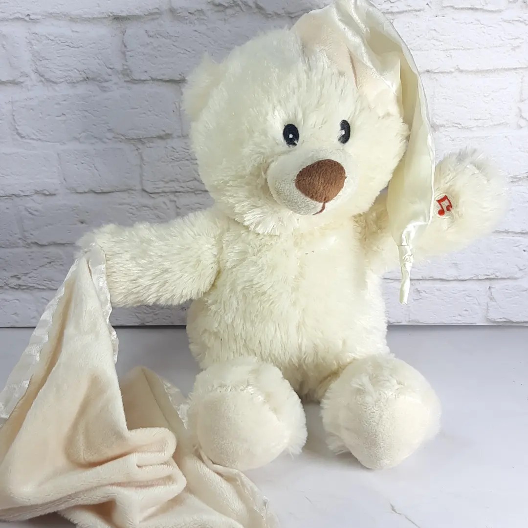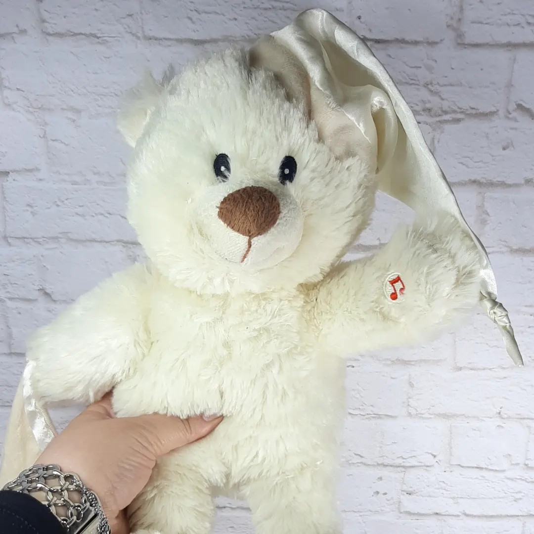 عروسک پولیشی موزیکال و چراغ خواب دار خرسی بسیار زیبا و با کیفیت دستگاه دار،باطری خور،خز ابریشمی و لطیف بسیار زیبا مبلمونسرا مدل 232514