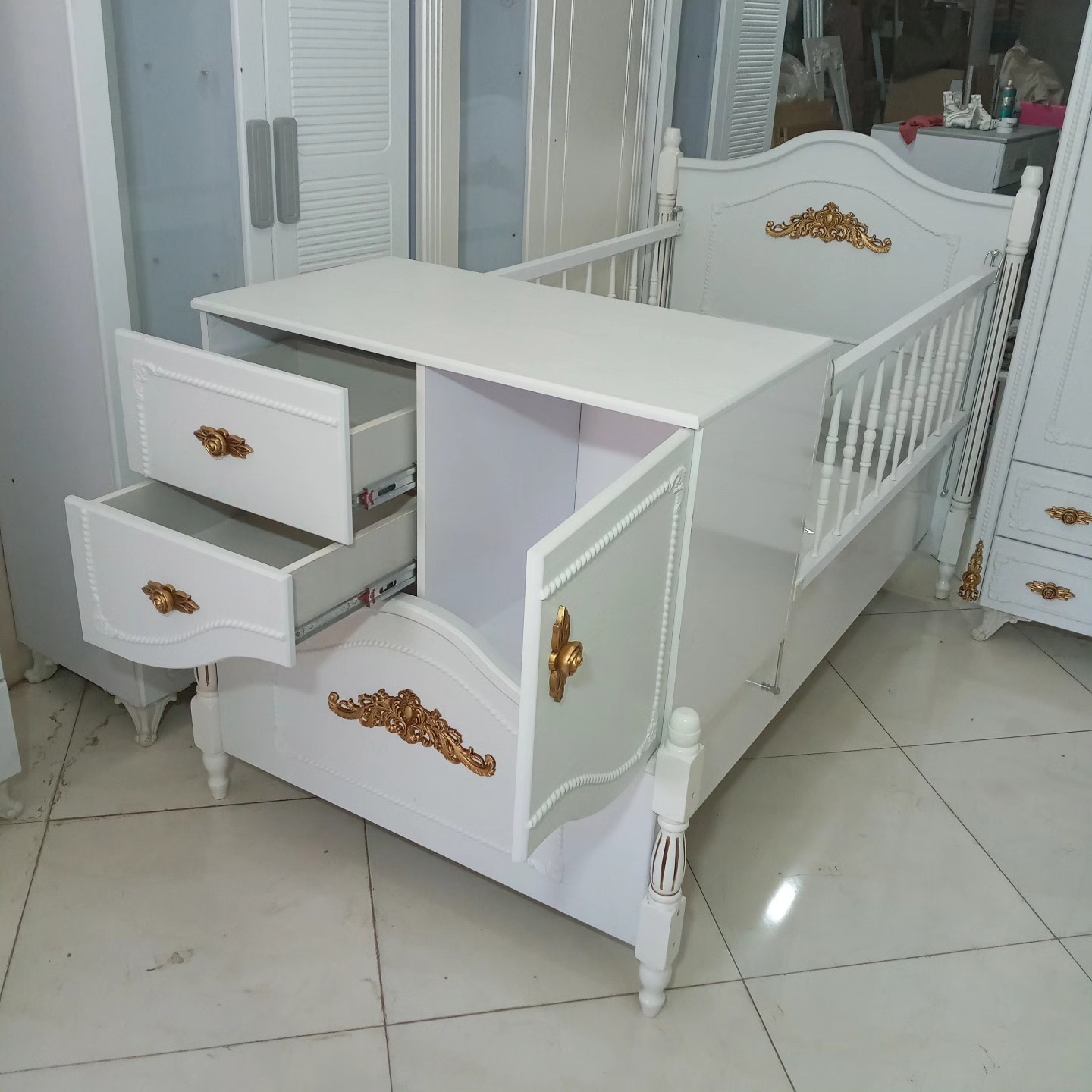 سیسمونی تخت و کمد نوزاد نوجوان دومنظوره اتاق کودک سرویس خواب بچه مبلمونسرا مدل 231134