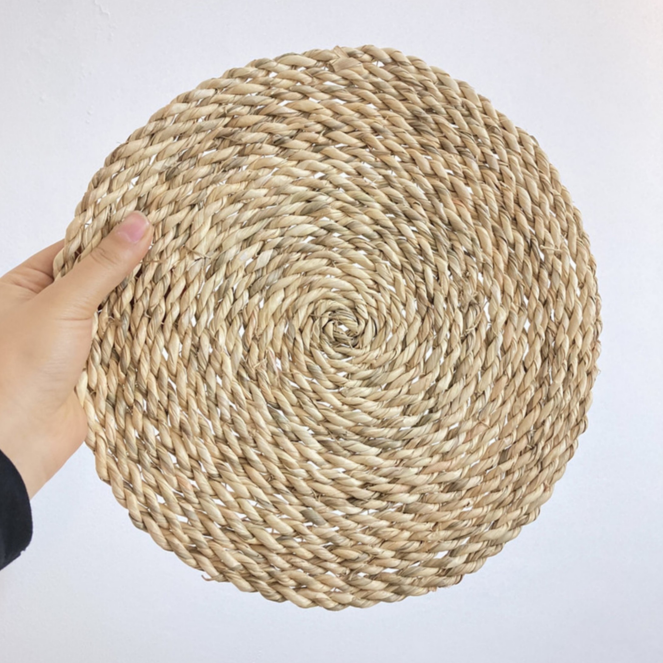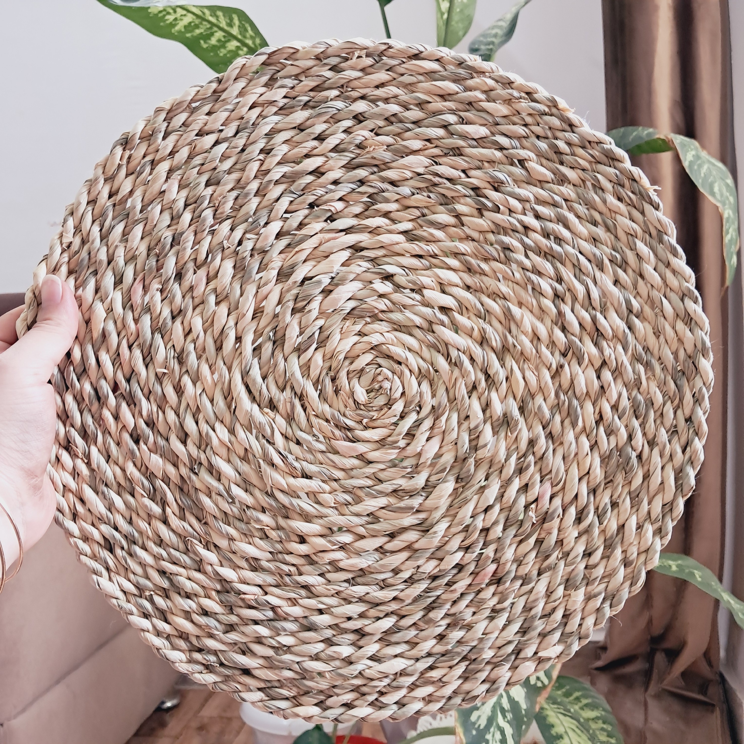 زیربشقابی حصیری 35سانتی.صنایع دستی حصیری.بافته شده با طناب حصیری گالی مبلمونسرا مدل 300610