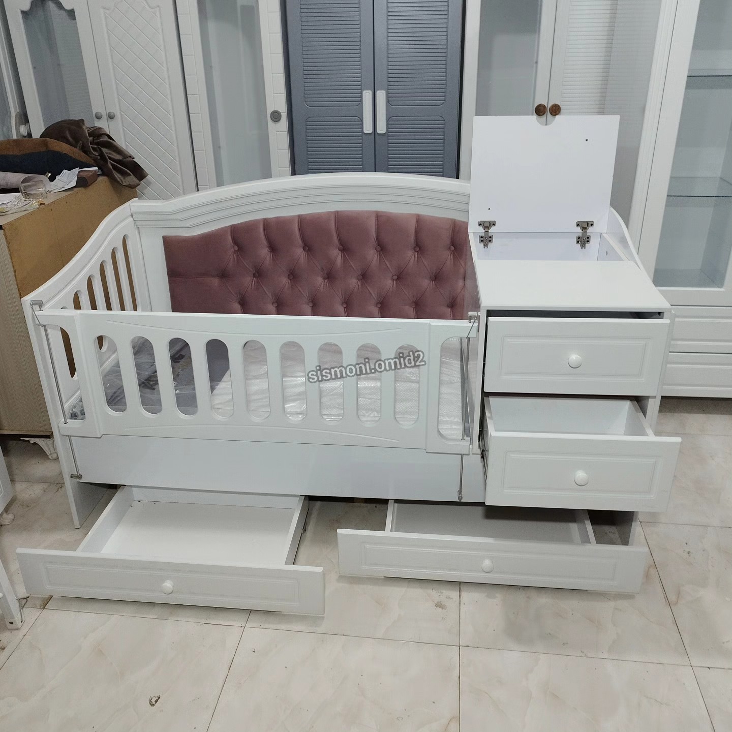 تخت و کمد نوزاد نوجوان دراور کودک بوفه ویترین سرویس خواب بچه اتاق کودک سیسمونی تخت و کمد نوزاد تخت و کمد بچه مبلمونسرا مدل 230710