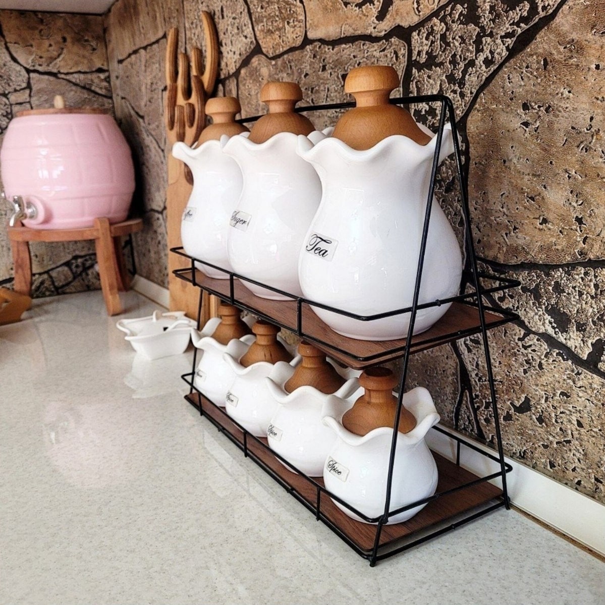 استند مستطیل پاسماوری دو طبقه فلزی کف چوب مبلمونسرا مدل 260246