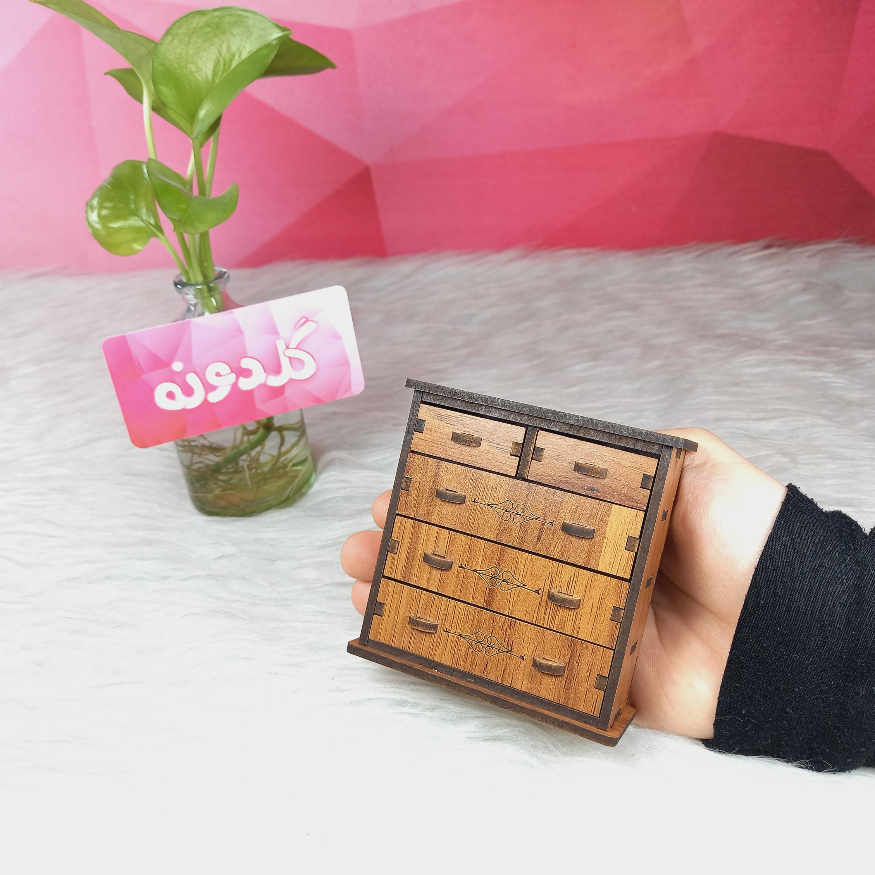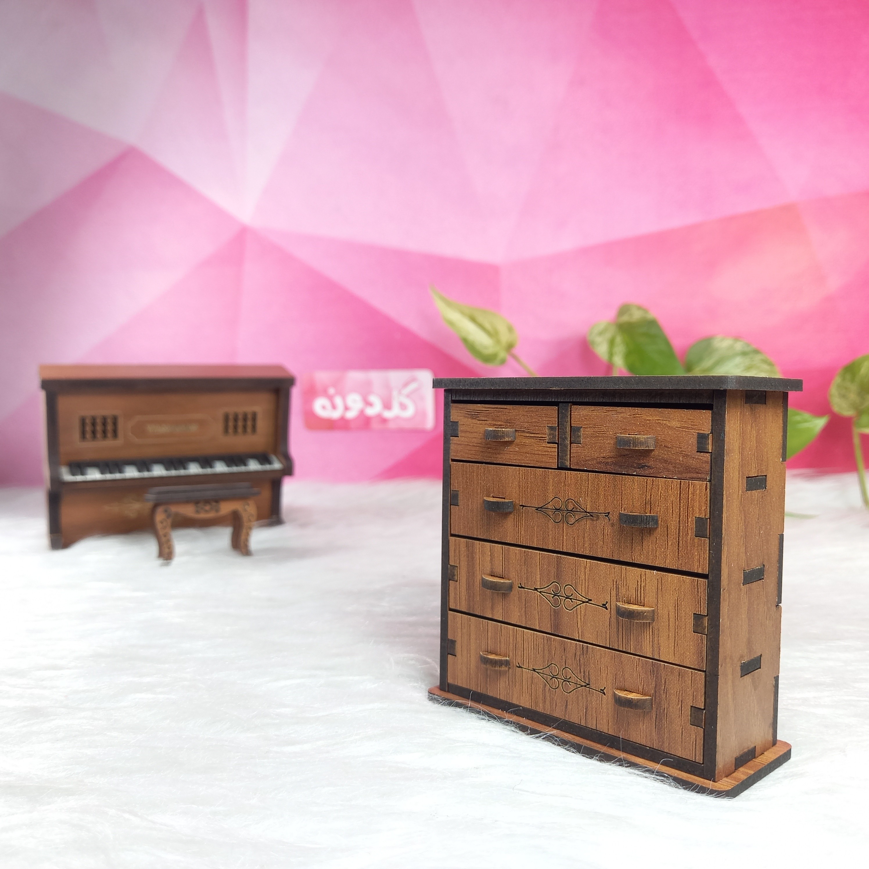 ماکت کشو دراور چوبی-دراور چوبی-کشو چوبی-کشو اسباب بازی دخترانه-دراور کشودار چوبی-دراور باربی-کمد بازی-ماکت گلدونه مبلمونسرا مدل 229627