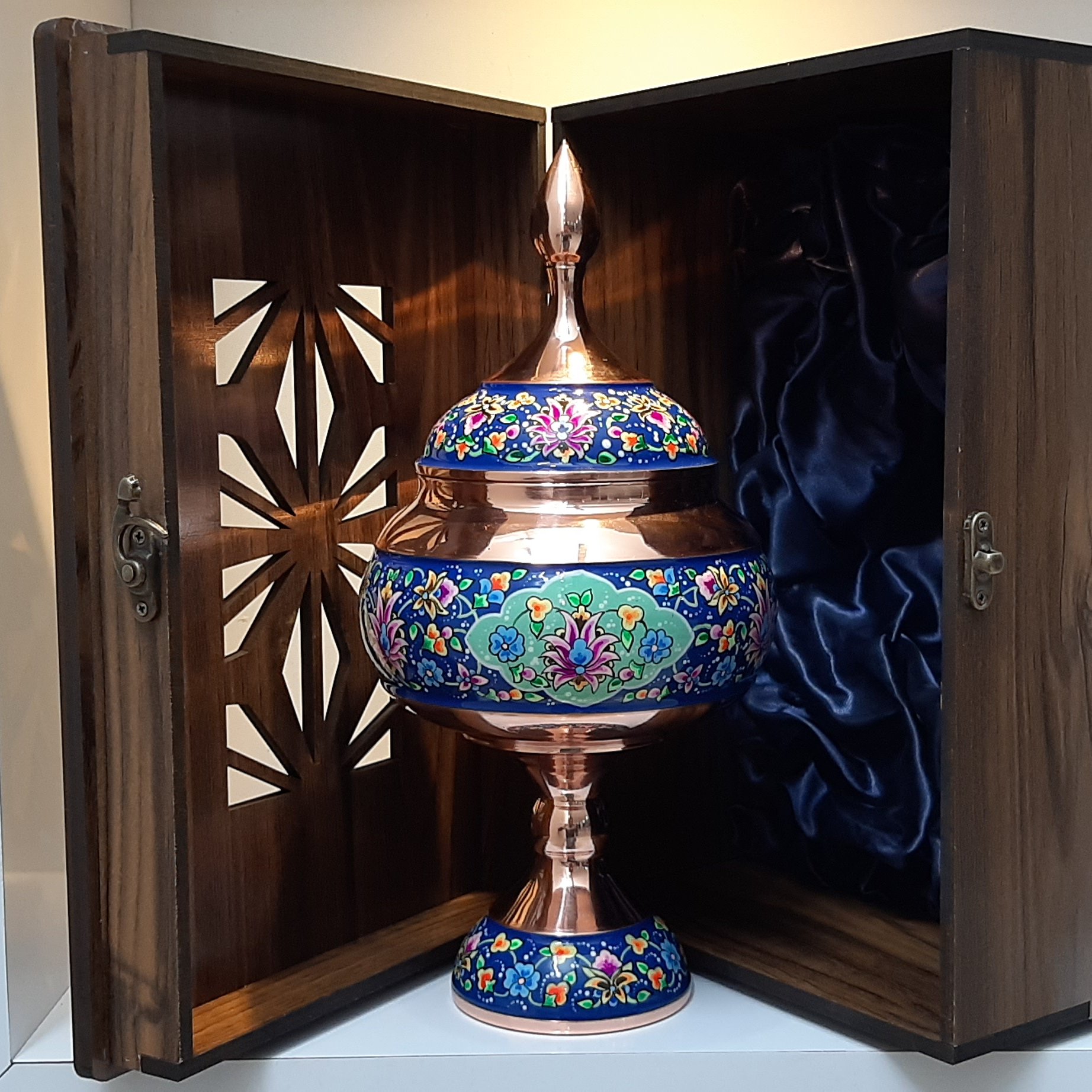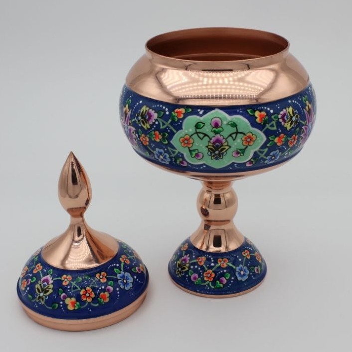 شکلات خوری مسی با طرح پرداز دارای ارتفاع 28 سانت می باشد مناسب جهت پذیرایی و دکور است برای تمیز کردن ظروف مسی ک پلی استر شده اند تنها با پارچه و دستمال نمدار روی آن ها را تمیز کنید شستن ظروف و یا کشیدن وسایل زبر باعث آسیب دیدن پلی استر کار میشود