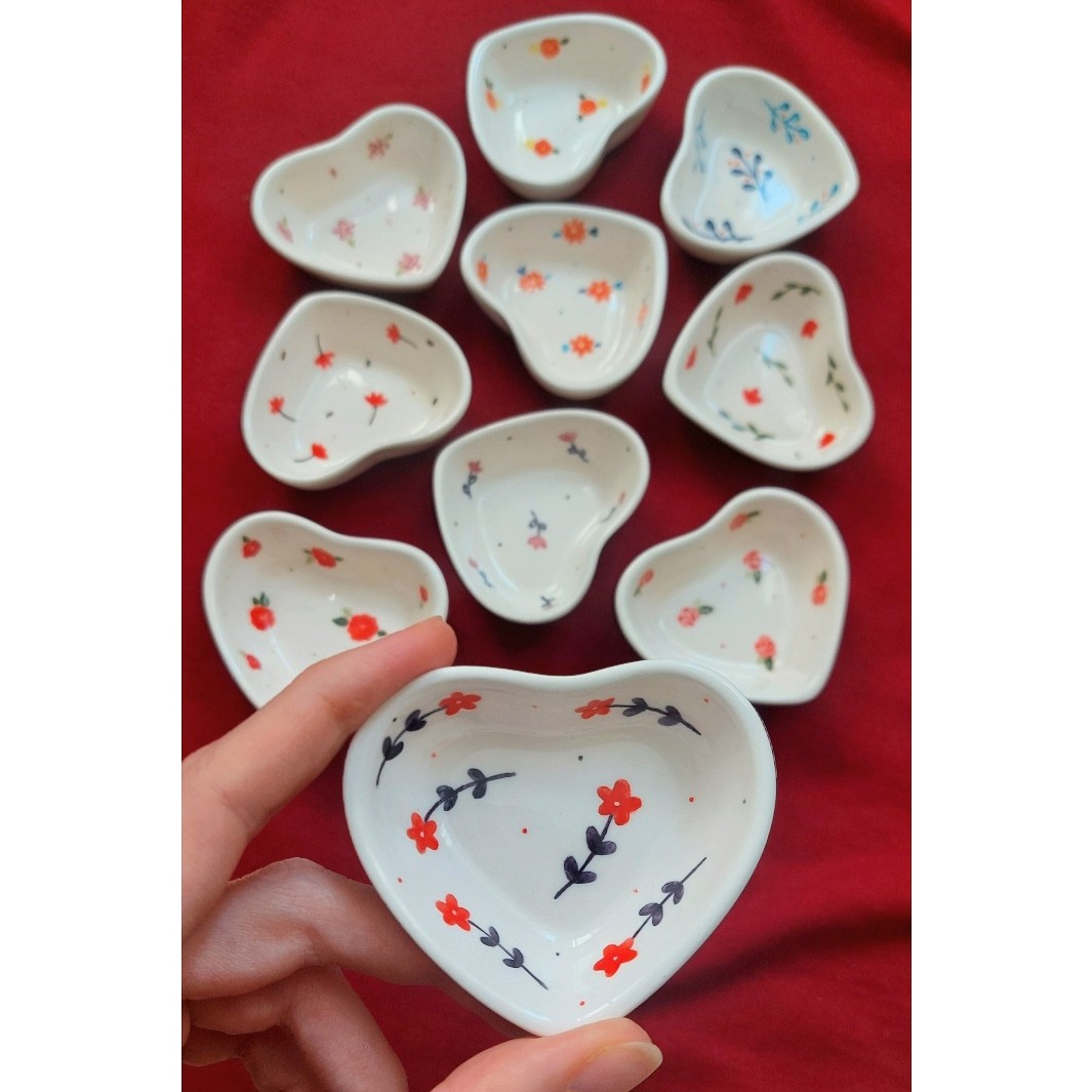پیاله سرامیکی قلبی دستساز طرح ها با دست نقاشی شده قطر دهانه پیاله حدودا 7سانت ارتفاع پیاله 3 سانت قیمت هر عدد 60هزارتومان