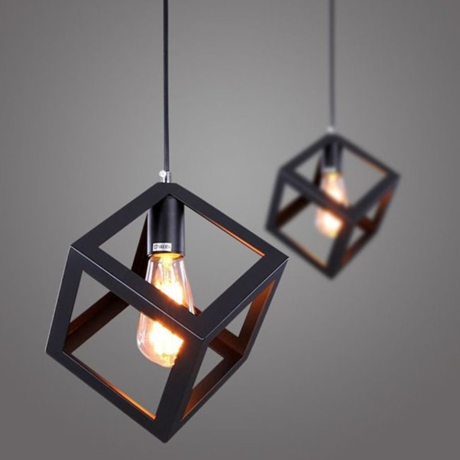 لوستر مکعب فلزی رنگمشکی تک شعله دوشعله و سه شعله این کار را میتوانید سفارش دهید نصب آسان نور مناسب لامپ ادیسونی و لامپ کم مصرف هر دو در این لوستر نصب میشود