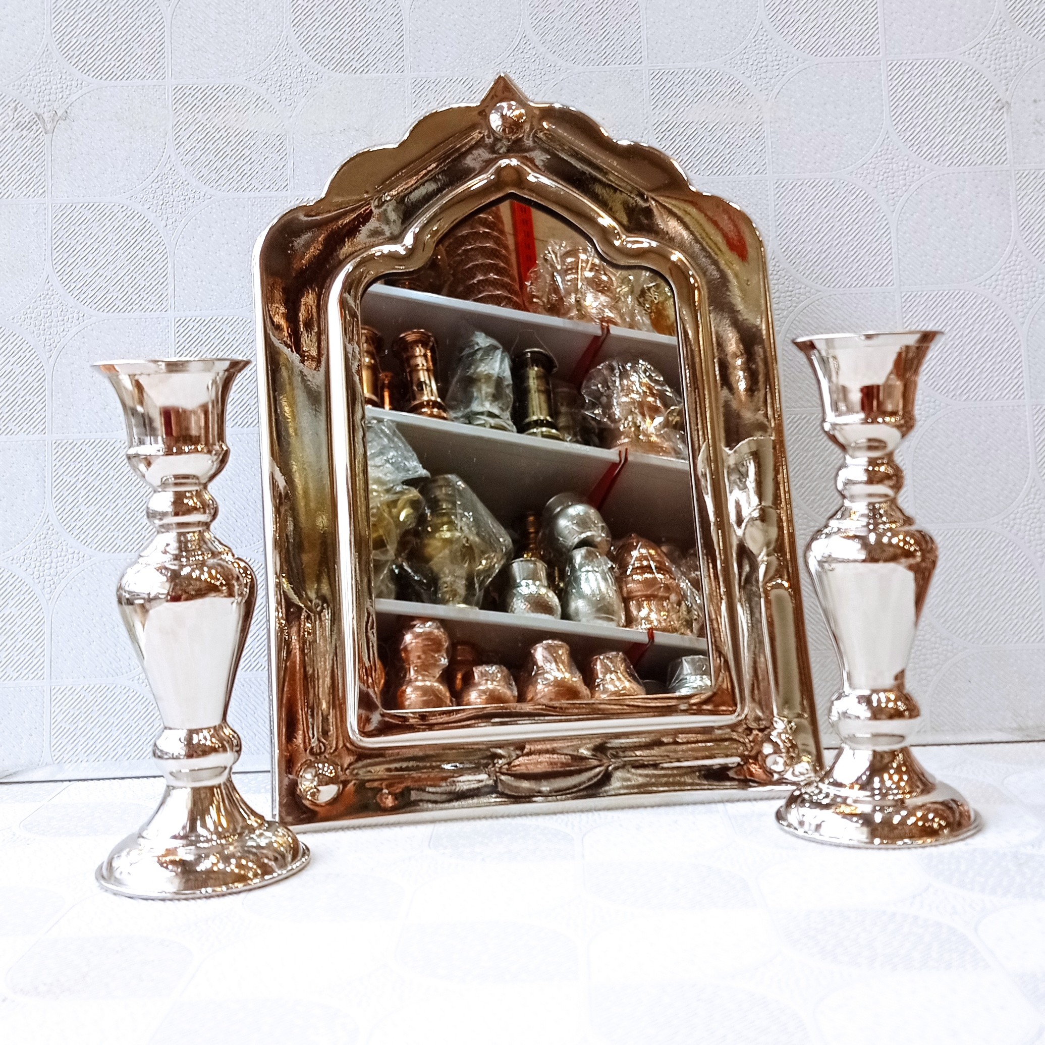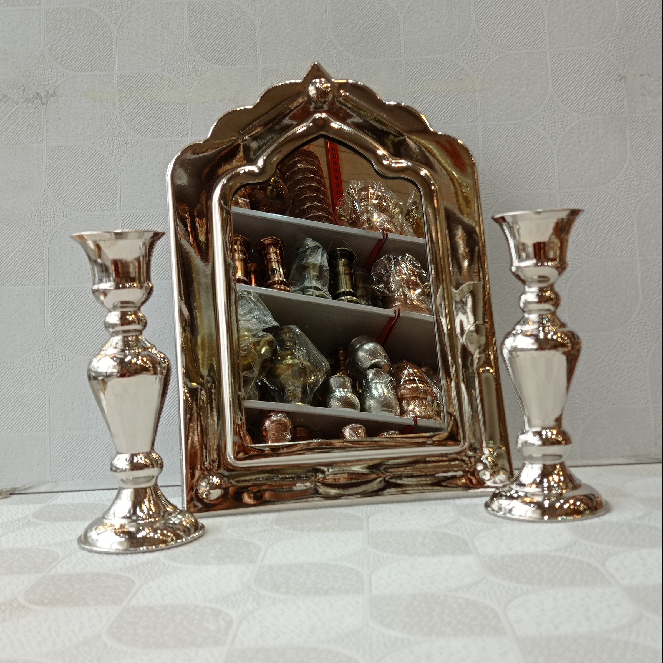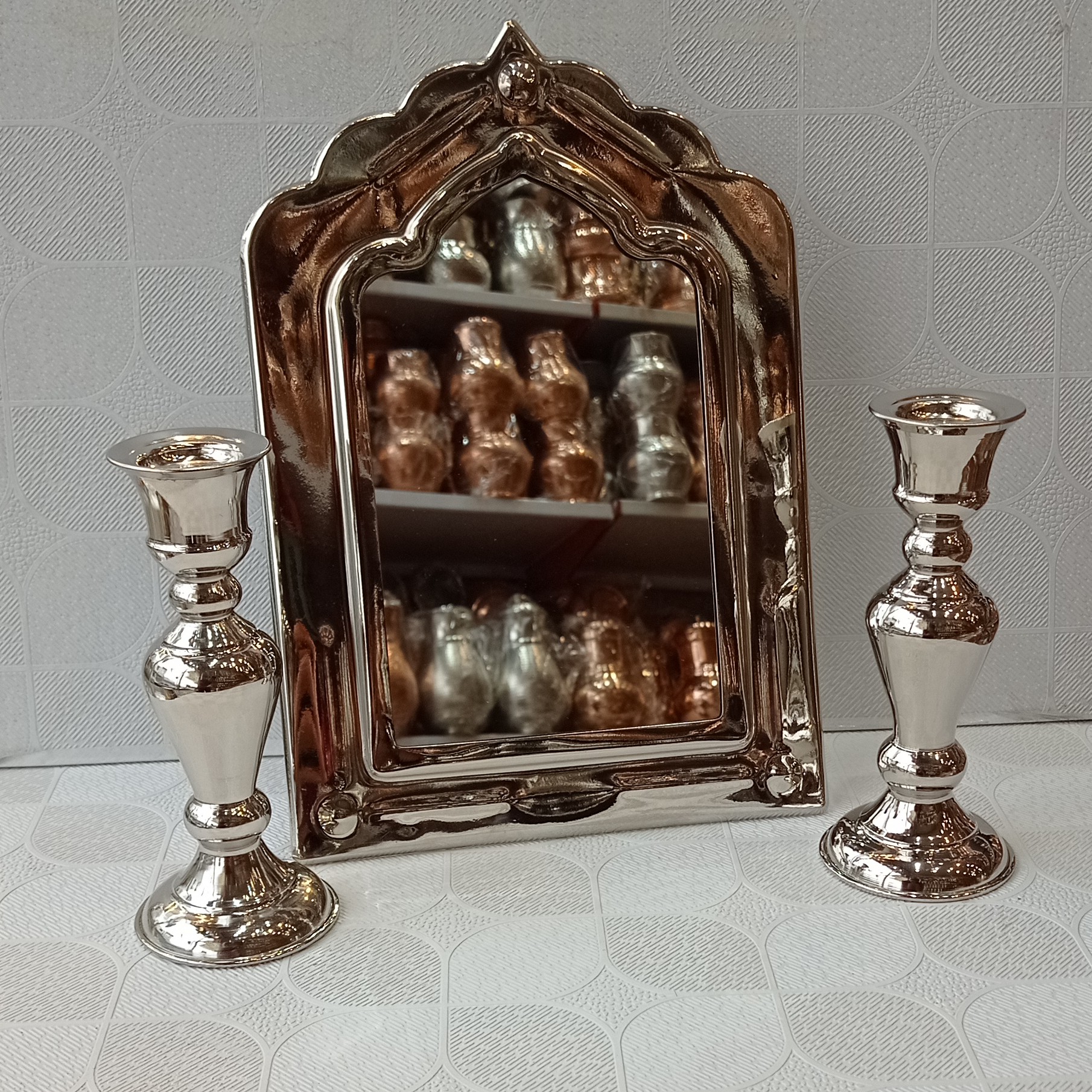 آینه و شمعدان مسی کروم مبلمونسرا مدل 261029