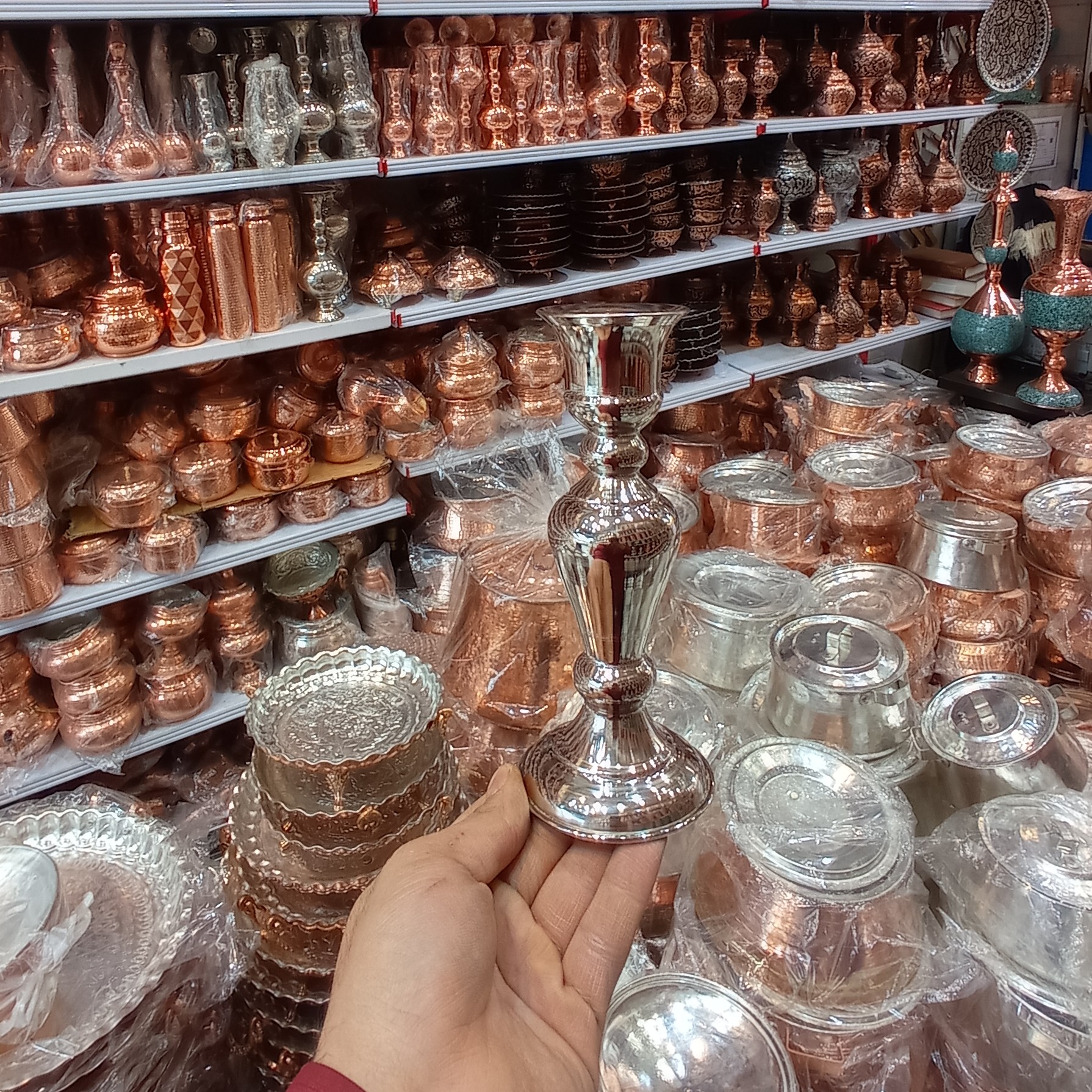 آینه و شمعدان مسی کروم شده بسیار زیبا مدل جدید رسا ساخت زنجان ارتفاع شمعدان : 19 سانتی متر ارتفاع آینه : 33 سانتی متر عرض آینه : 23 سانتی متر