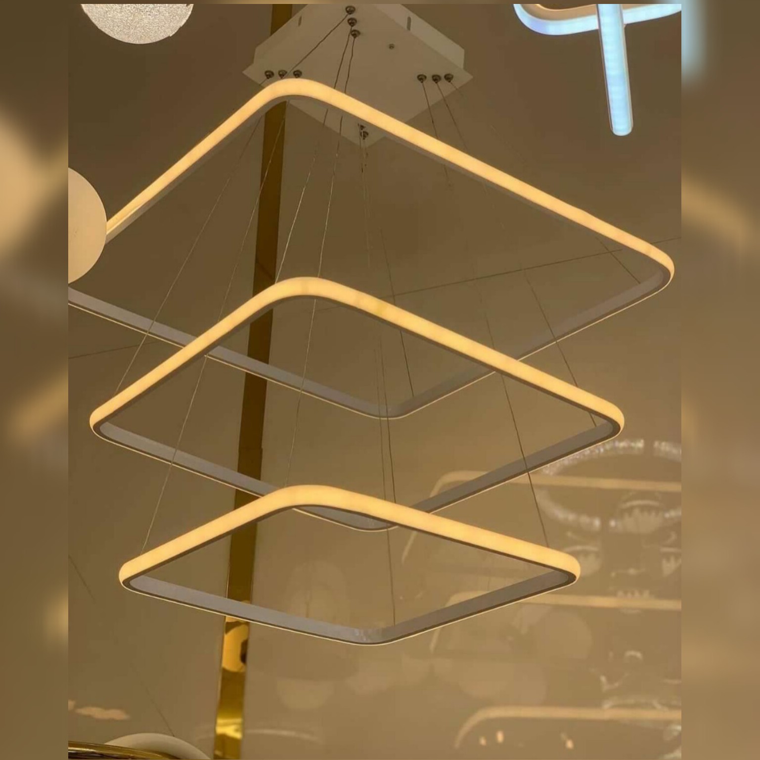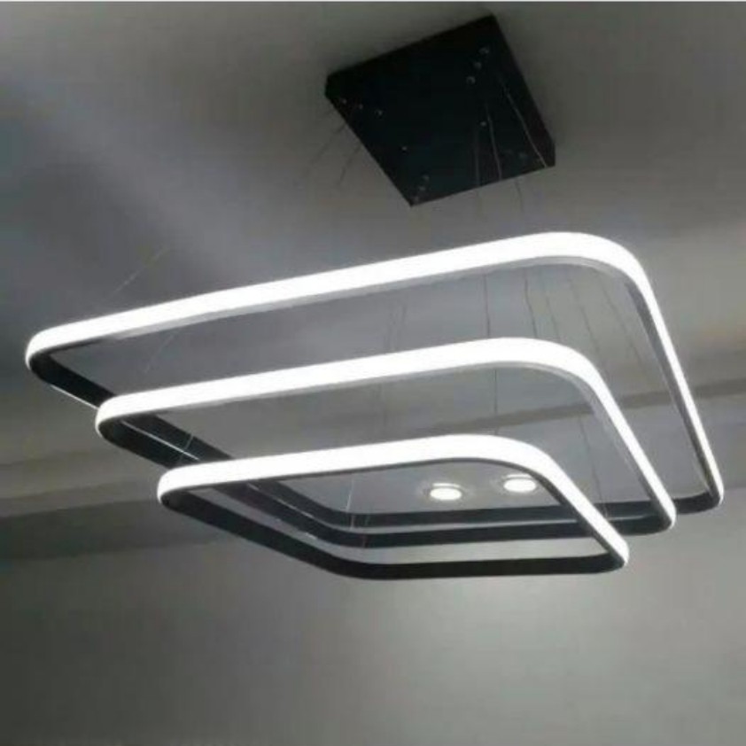 _پخش عمده و تکی _توجه داشته باشید همگی سفارشات با تیپاکس ارسال می شود. تمامی هزینه های ارسال برای شما عزیزان رایگان خواهد بود. _لوستر مدرن مربع متشکل از 3 مربع به ابعاد 50، 40 و 30 _موجود در چهار رنگ طلایی،نقره ای،سفید و مشکی سوپرمات _دارای چهار حالت آفتابی،مهتابی،نچرال و حالت شب _قابل کنترل با ریموت کنترل و اپ موبایل _نور این لوستر به بیرون است که برخلاف نور داخل،پخش نور بالایی دارد. _آلومینیوم به کار رفته فابریک می باشد که در انتقال حرارت و در نتیجه عمر کار تاثیر زیادی دارد. _این محصول به طور مستقیم و بدون واسطه با بالاترین کیفیت و نازل ترین قیمت از تولیدی به دست شما میرسد. _ارتفاع این لوستر از 30 سانتی متر تا 1 متر قابل تنظیم است و با تغییر ارتفاع می توان طرح های مختلفی ساخت. _ریموت کنترل به همراه محصول ارسال می شود. _دارای گارانتی و خدمات پس از فروش