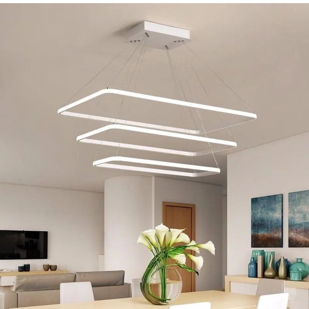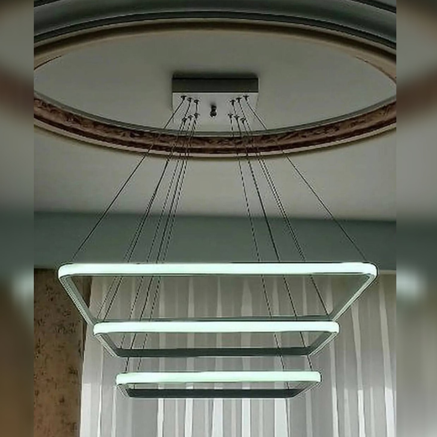 _پخش به صورت عمده و تکی _توجه داشته باشید همگی سفارشات با تیپاکس ارسال می شود. تمامی هزینه های ارسال برای شما عزیزان رایگان خواهد بود. _لوستر مدرن مستطیل متشکل از 3 مستطیل 40×80، 30×60 و 20×40 _موجود در چهار رنگ طلایی،نقره ای،سفید و مشکی سوپرمات _دارای چهار حالت آفتابی،مهتابی،نچرال و حالت شب _قابل کنترل با ریموت کنترل و اپ موبایل _نور این لوستر به بیرون است که برخلاف نور داخل،پخش نور بالایی دارد. _آلومینیوم به کار رفته فابریک می باشد که در انتقال حرارت و در نتیجه عمر کار تاثیر زیادی دارد. _این محصول به طور مستقیم و بدون واسطه با بالاترین کیفیت و نازل ترین قیمت از تولیدی به دست شما میرسد. _ارتفاع این لوستر از 30 سانتی متر تا 1 متر قابل تنظیم است و با تغییر ارتفاع می توان طرح های مختلفی ساخت. _ریموت کنترل به همراه محصول ارسال می شود. _دارای گارانتی و خدمات پس از فروش